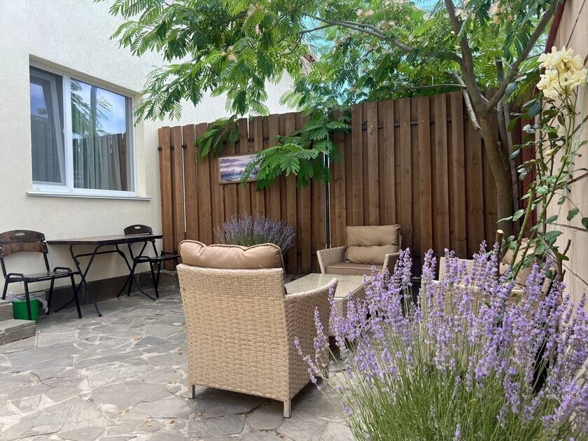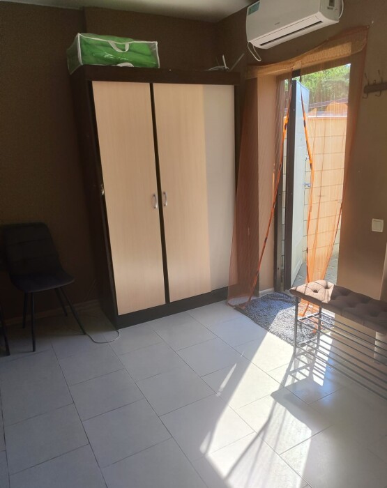 Апартаменты в частном доме находится в снт Первомайское-1, мыс Фиолент, рядом с парком Монастыря, в очень красивом месте. Рядом спуск к пляжу Яшмовый. В пешей доступности магазины, аптека, остановка общественного транспорта.
