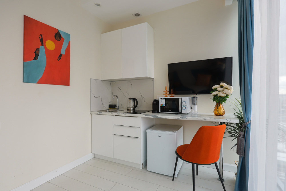 - плита, микроволновка, чайник, кофемашина, холодильник;