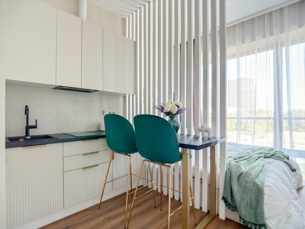 Шикарная студия в ЖК «AFI Park Воронцовский». Метро «Воронцовская» находится в 7 минутах ходьбы, «Калужская» и «Новаторская» - в 15 минутах ходьбы.