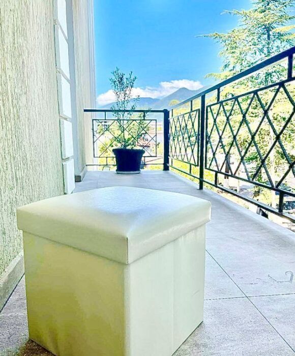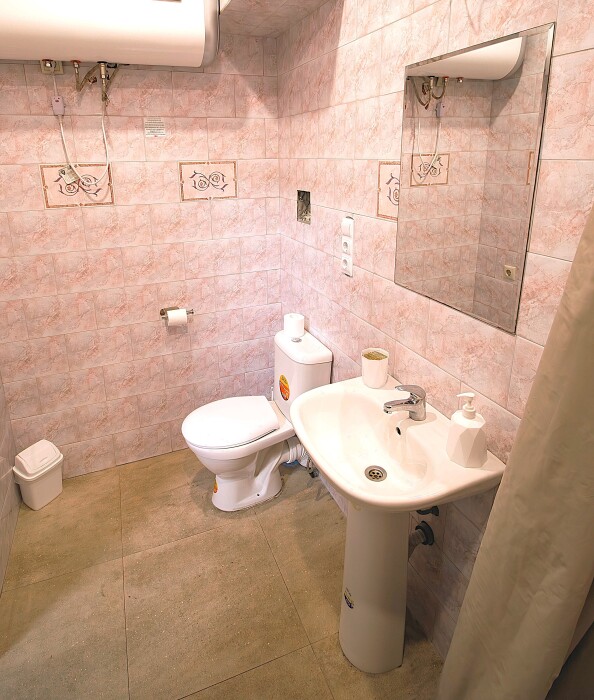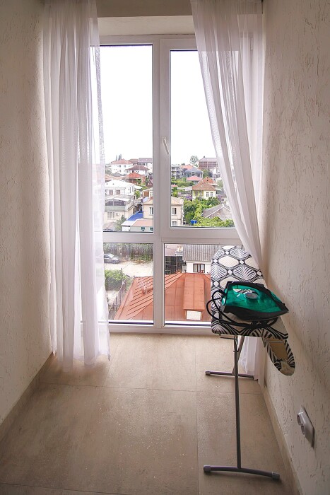 На каждом этаже просторные, общие балконы, гладильная доска и утюг. Стиральная машина в общем доступе. На мансардном этаже столовая и зона отдыха с панорамным видом на море.