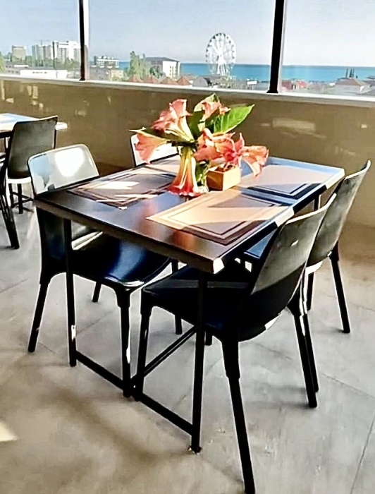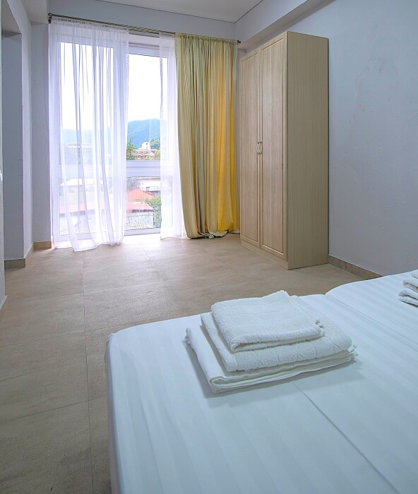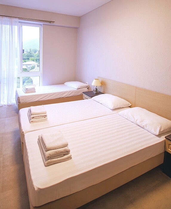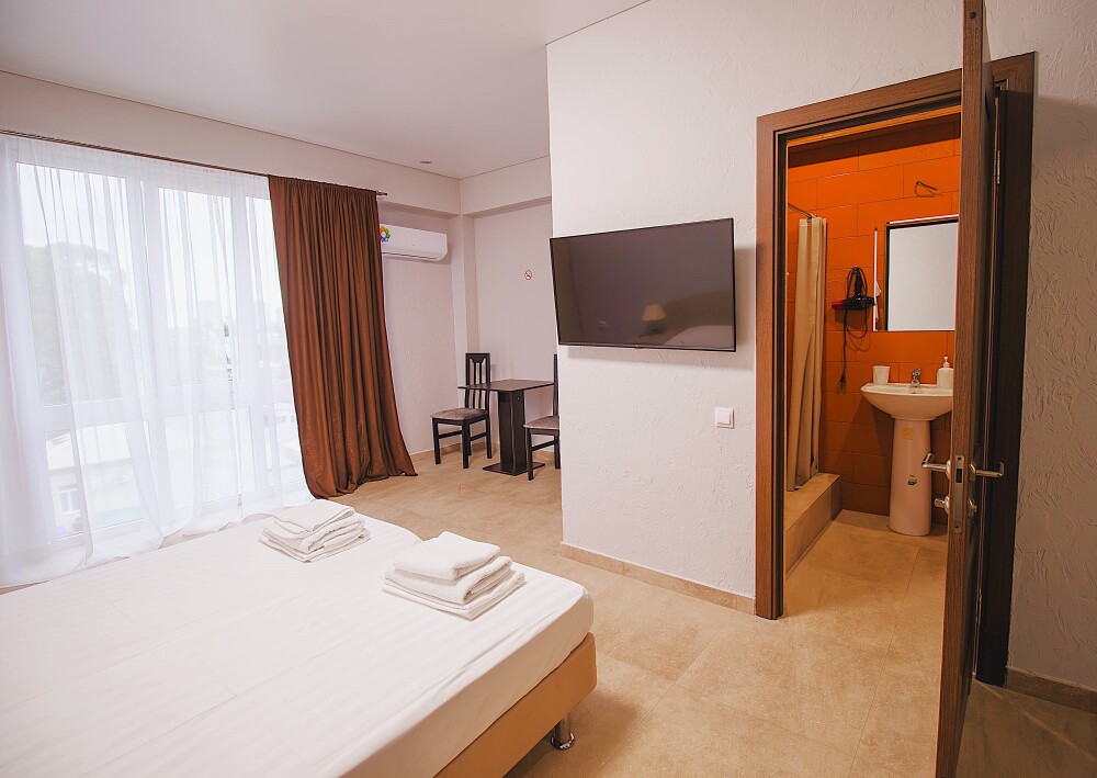 С эксплуатируемой крыши отеля открывается панорамный вид на город, горы и море. Там также располагается зона отдыха с гамаками. Гостям отеля предоставят лежаки для принятия солнечных ванн. В просторных номерах: кровати, платяной шкаф, телевизор, стол со стульями, чайник, холодильник, душ, туалет, фен и бесплатные гигиенические принадлежности. Все номера оборудованы кондиционерами. В каждом номере нашего отеля работает бесплатный Wi-Fi. На каждом этаже просторные, общие балконы.