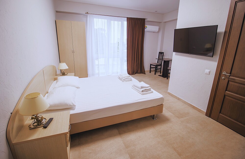 В просторных номерах: кровати, платяной шкаф, телевизор, стол со стульями, чайник, холодильник, душ, туалет, фен и бесплатные гигиенические принадлежности. Все номера оборудованы кондиционерами. В каждом номере бесплатный Wi-Fi.