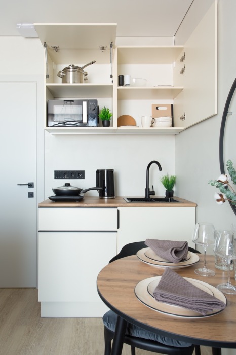 В квартире есть всё необходимое для проживания 2-х человек: