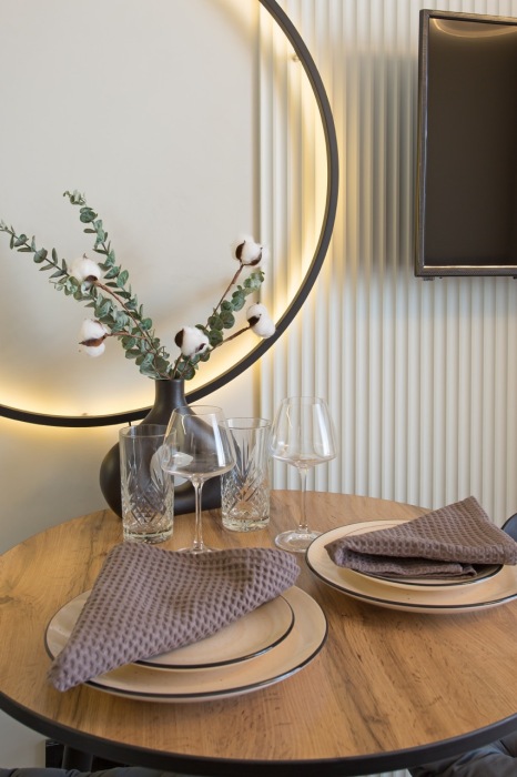Стильная уютная студия в ЖК «Мята». Большие окна. Качественная дорогая мебель и техника. Интерьер продуман до мелочей. Апартаменты, откуда не хочется уезжать. Метро «Хорошевская» находится в 10 минутах ходьбы.