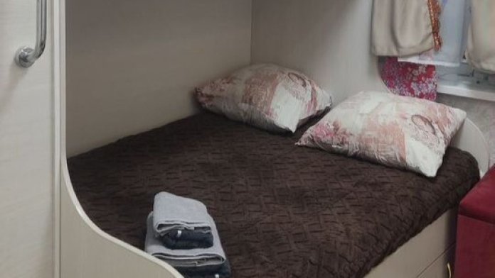 В квартире есть все необходимое для проживания. Кровать 3-спальная: внизу двойное спальное место, 190*140 см, верху одинарное спальное место 190*70 см. Также 4 пуфика сдвигаются в спальное место для ребёнка, 160х60 (в случае острой необходимости, а так пуфики выполняют роль стульев). Всегда чистое и выглаженное белье и полотенца. На выбор: евро или семейный спальный комплект. Гостевые тапочки. В квартире сделан новый евроремонт, полностью новая техника. Фен, посуда, микроволновка, холодильник, кондиционер, телевизор, интернет, душ, туалет, водонагреватель, электрический полотенцесушитель, туалетные принадлежности. Квартира небольшая, но уютная.
