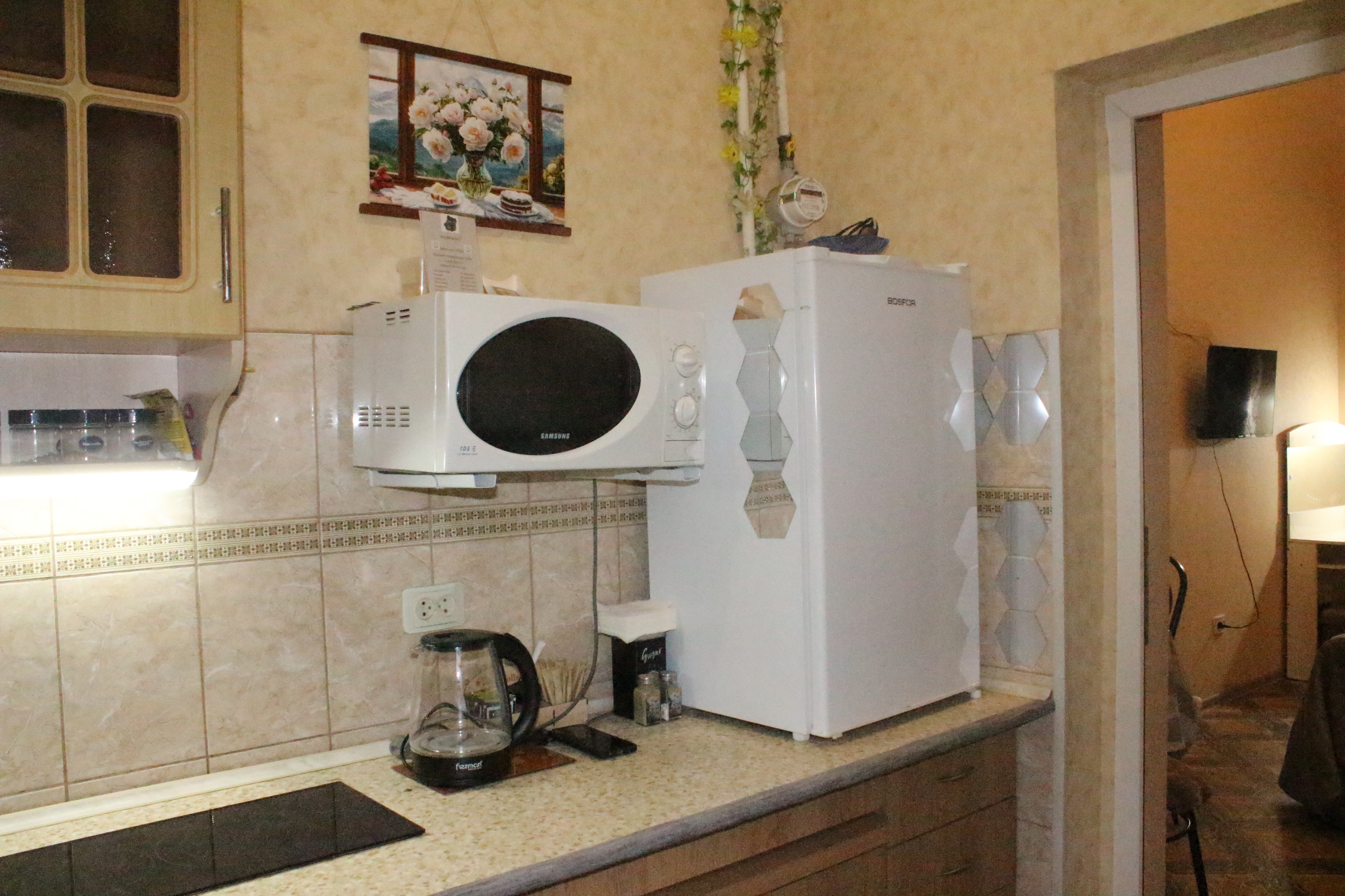 В квартире есть всё для проживания: индивидуальное отопление, телевизор, Wi-Fi, туалет с душевой. Всегда чистое и поглаженное белье и полотенца. На выбор: евро или семейный спальный комплект. Гостевые тапочки. Столик для макияжа с лампочками, фен, посуда, микроволновка, холодильник, набор специй.