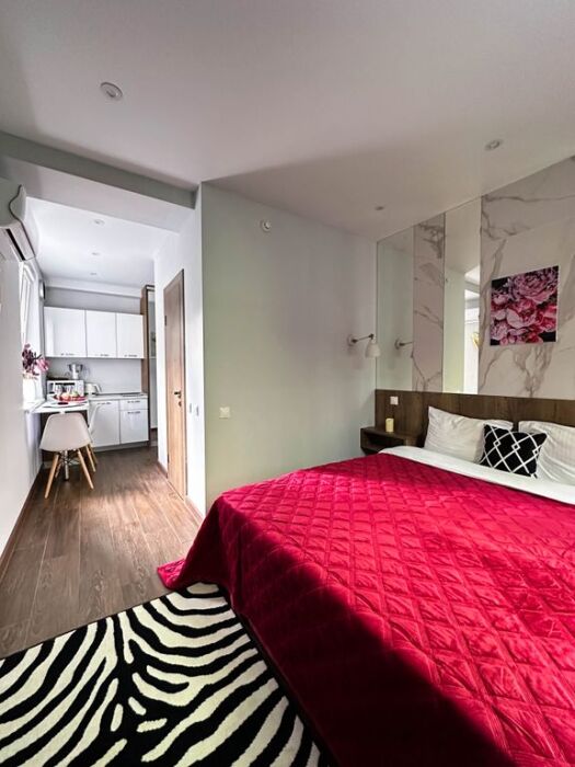 Уютная студия расположена в тихом микрорайоне, вблизи крупных санаториев, в некоторых из них можно на платной основе пройти оздоровительные процедуры, получить доступ в СПА-зонам, бассейнам, пляжам.