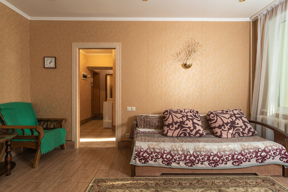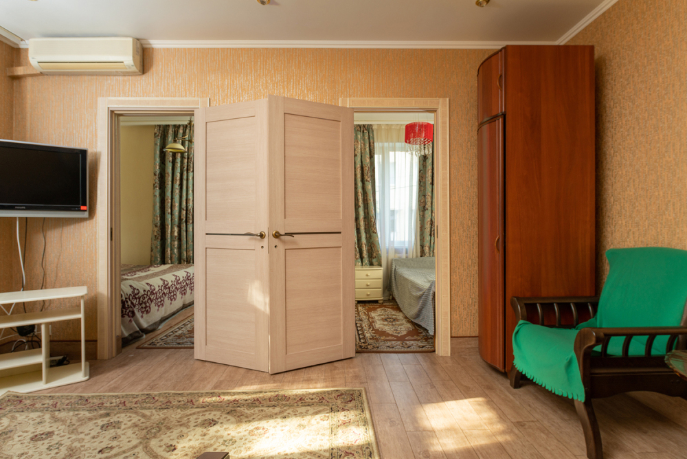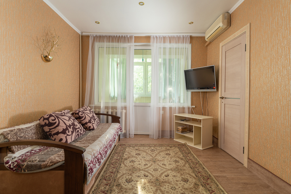 Двухкомнатная квартира расположена в самом центре Сочи рядом с парком и пляжем «Ривьера».
