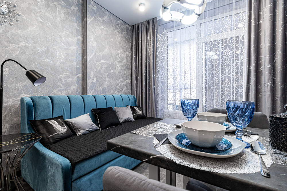 Роскошная обстановка с дизайнерским интерьером и премиальной отделкой.