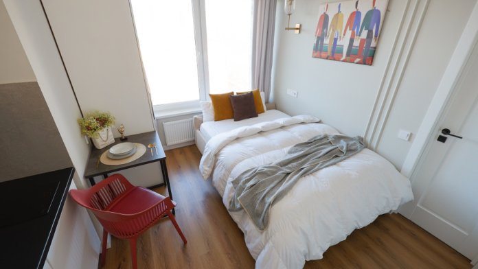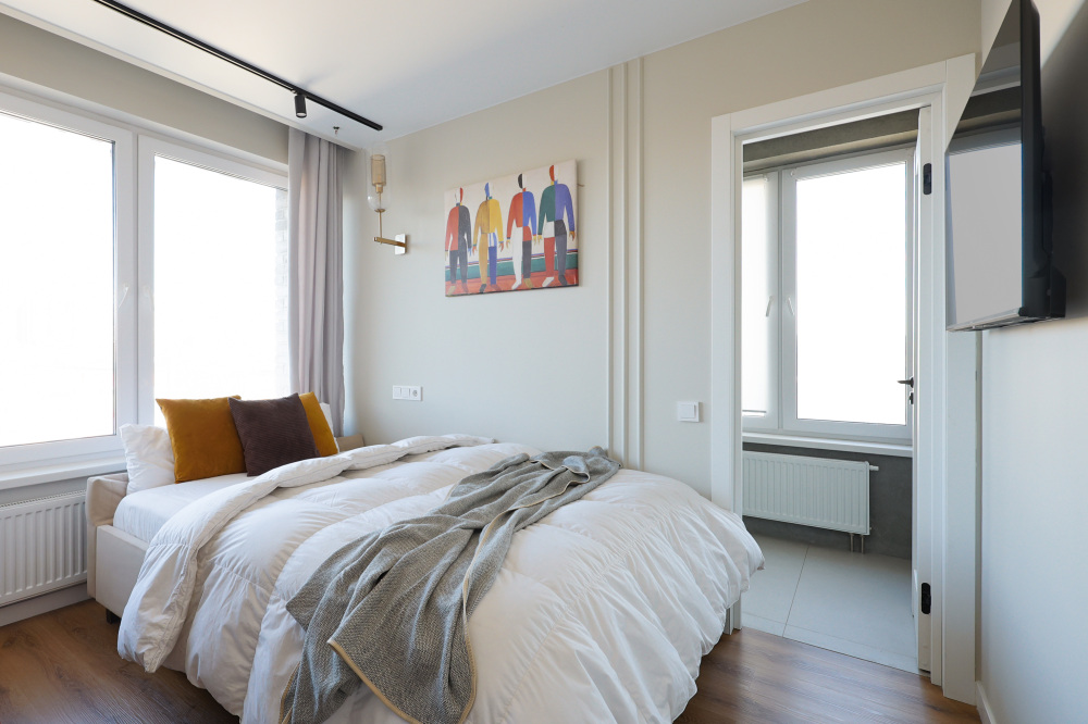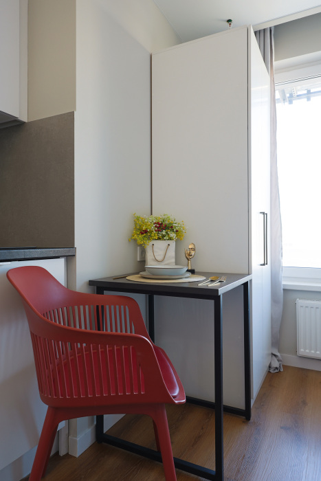 Стильная уютная студия в ЖК «Мята». Большие окна. Качественная дорогая мебель и техника. Интерьер продуман до мелочей. Апартаменты, откуда не хочется уезжать. Метро «Хорошевская» (10 минут пешком).