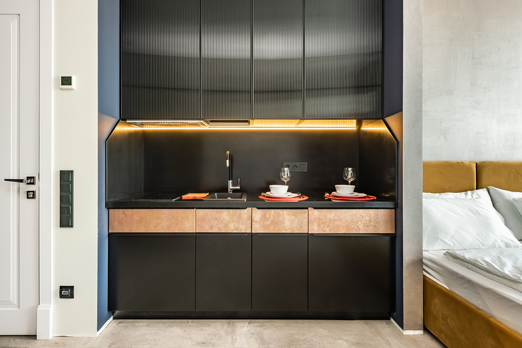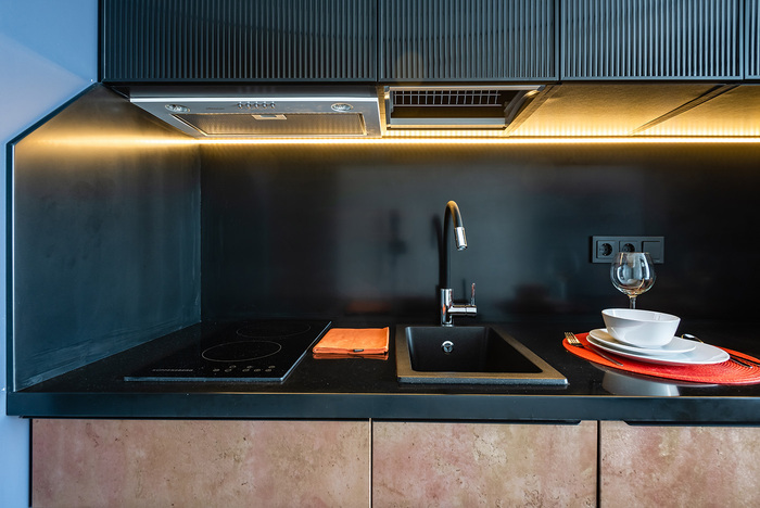 - плита, микроволновка, чайник, кофемашина, холодильник;