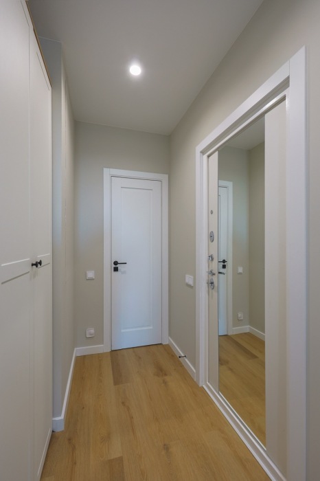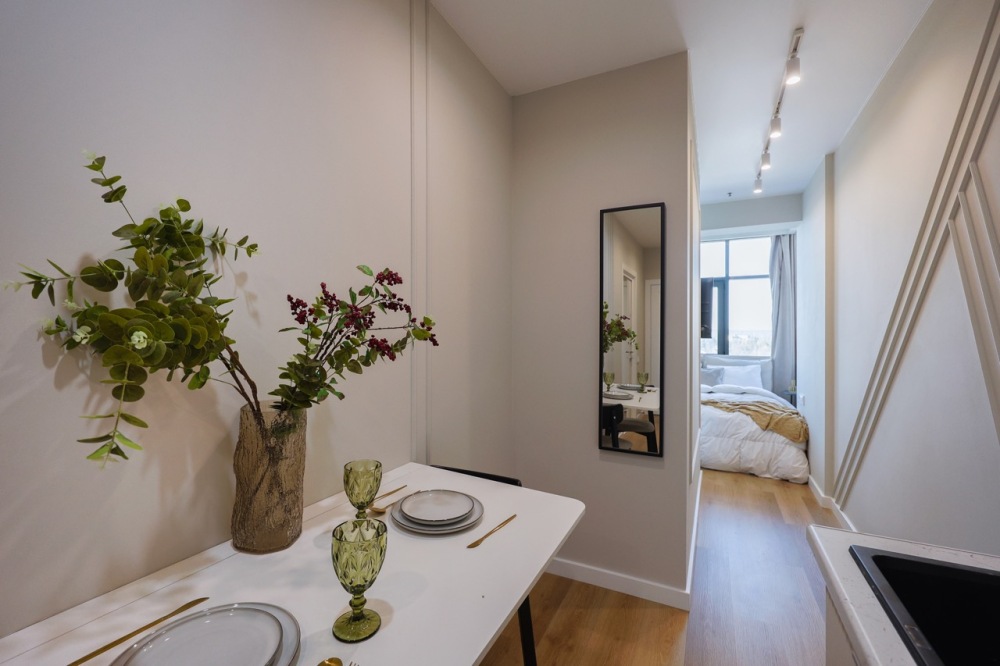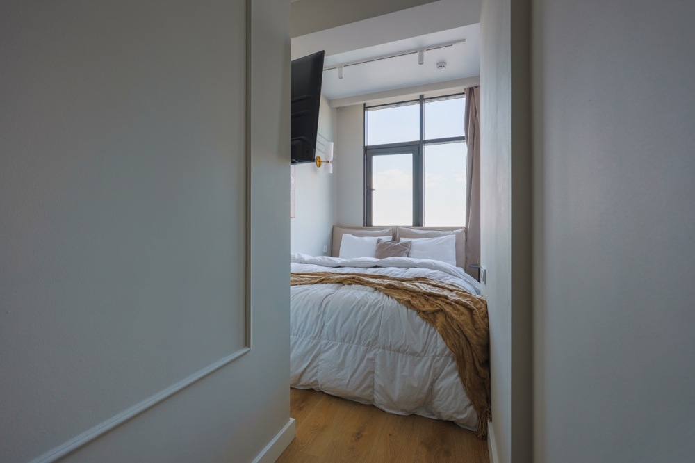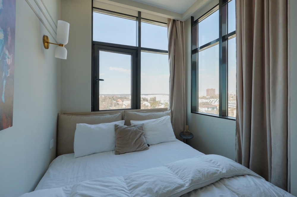 Современная студия в ЖК «Sky Skolkovo». Большие окна. Качественная дорогая мебель и техника. Интерьер продуман до мелочей. Апартаменты, откуда не хочется уезжать.
