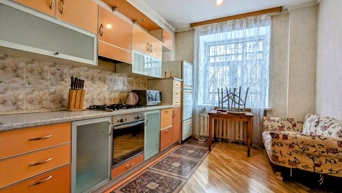 Удобства: двухспальный диван, двуспальная кровать, вместительный шкаф, WI-FI 300, гладильная доска, утюг, сушилка для белья, фен, оборудованная кухня ( плита, духовой шкаф), холодильник, полный комплект посуды для приготовления и приёма еды, стиральная машина с сушкой. После каждого выезда гостей проводим генеральную уборку.