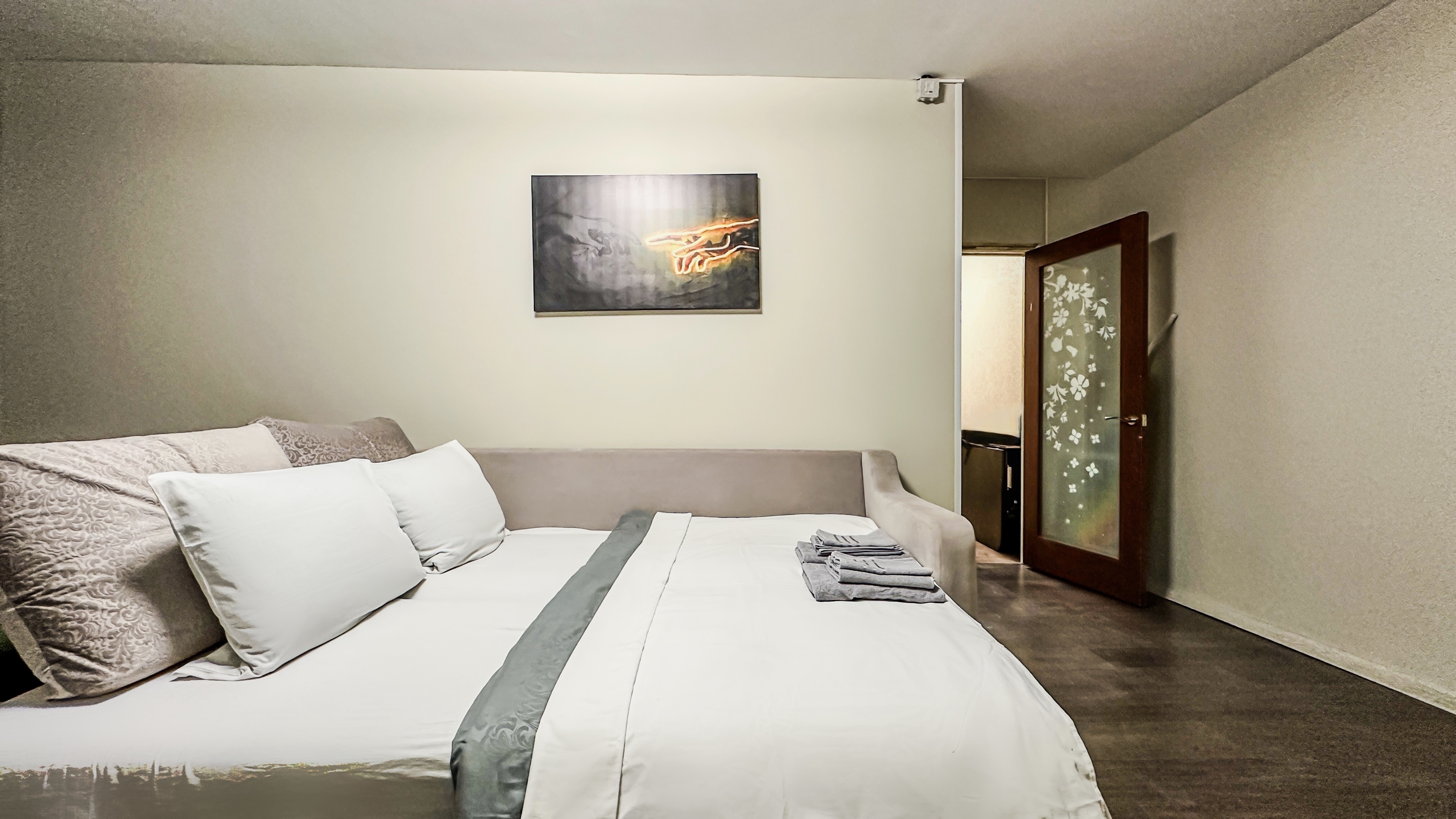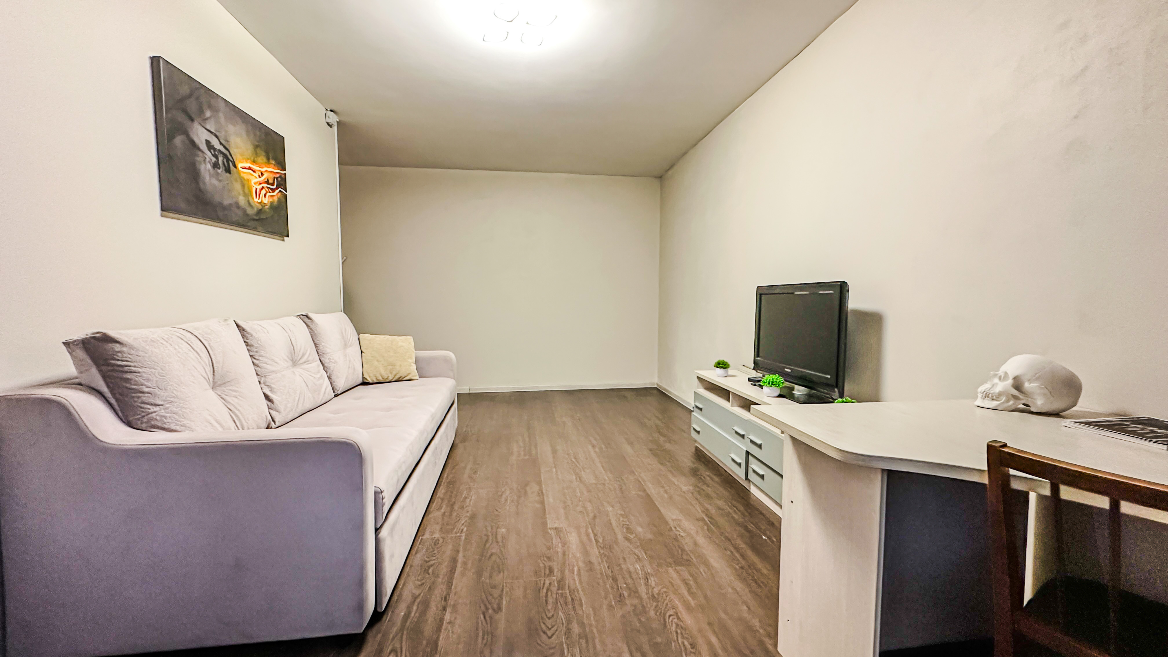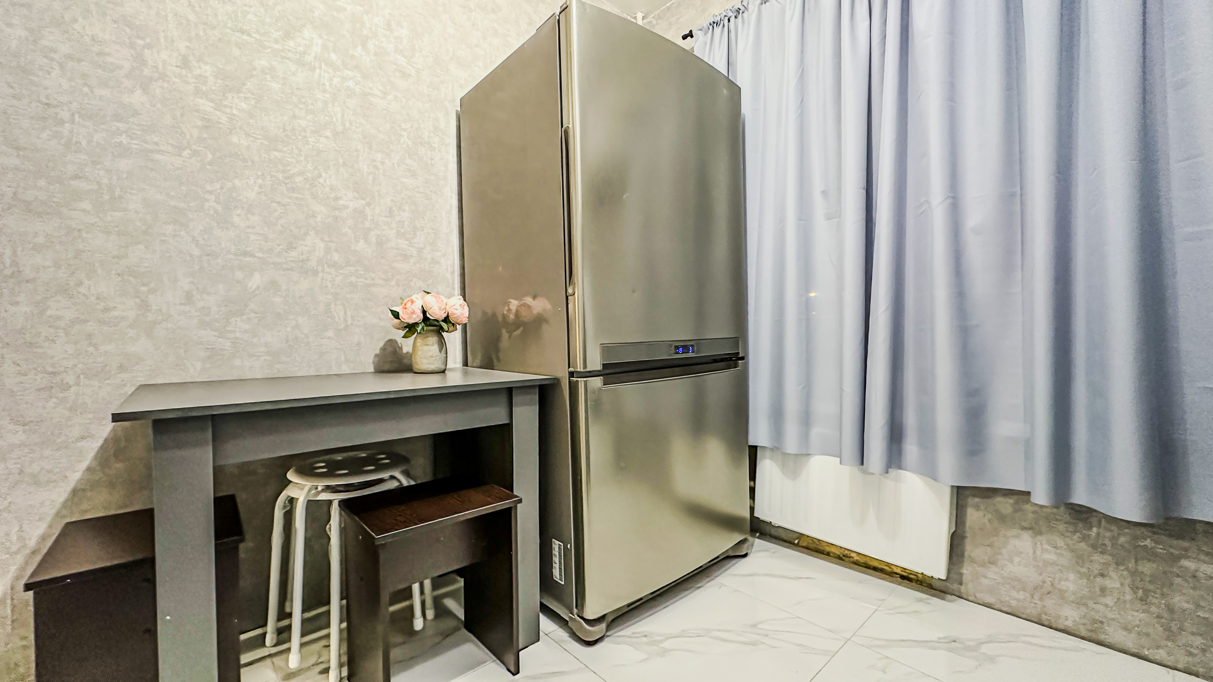 Удобства: двуспальная кровать, двуспальный диван, вместительный шкаф, сушилка для белья, фен, оборудованная кухня, холодильник, полный комплект посуды для приготовления и приёма еды, стиральная машина . После каждого выезда гостей проводим генеральную уборку.