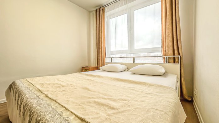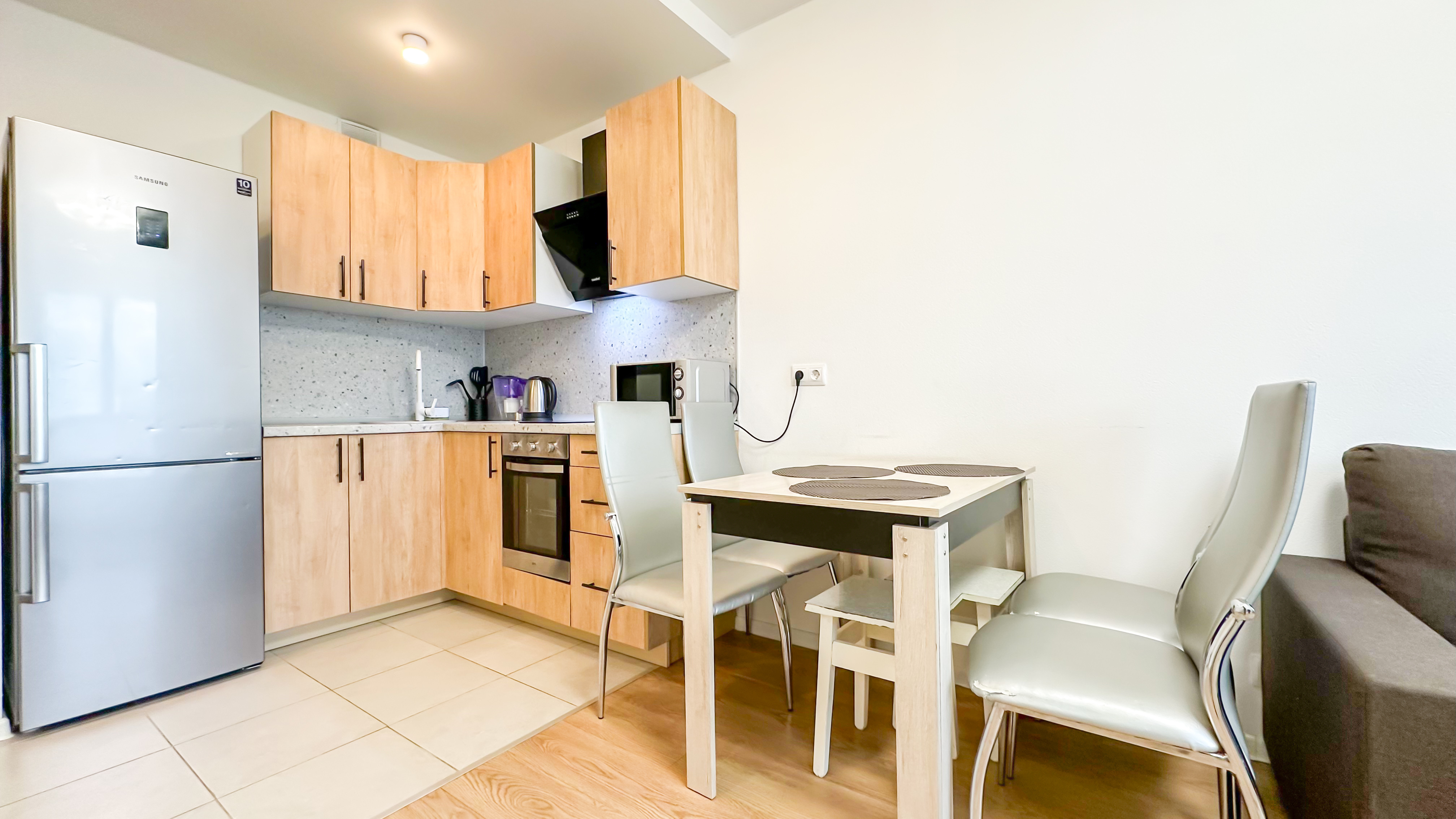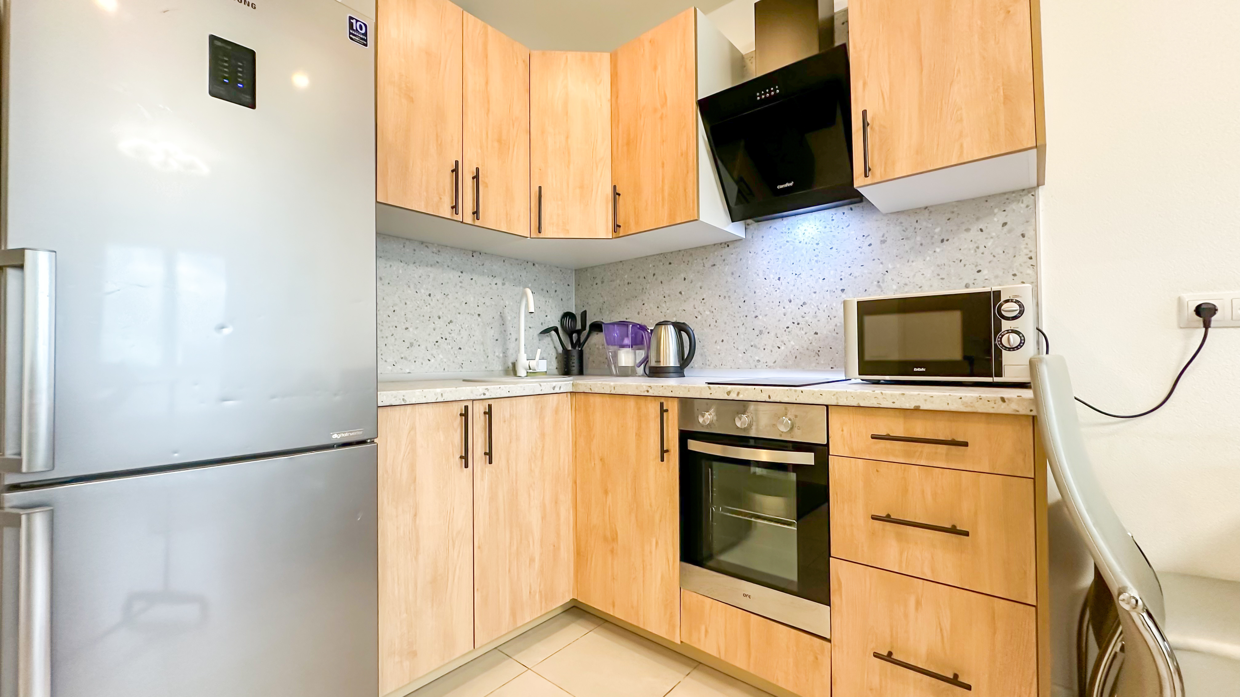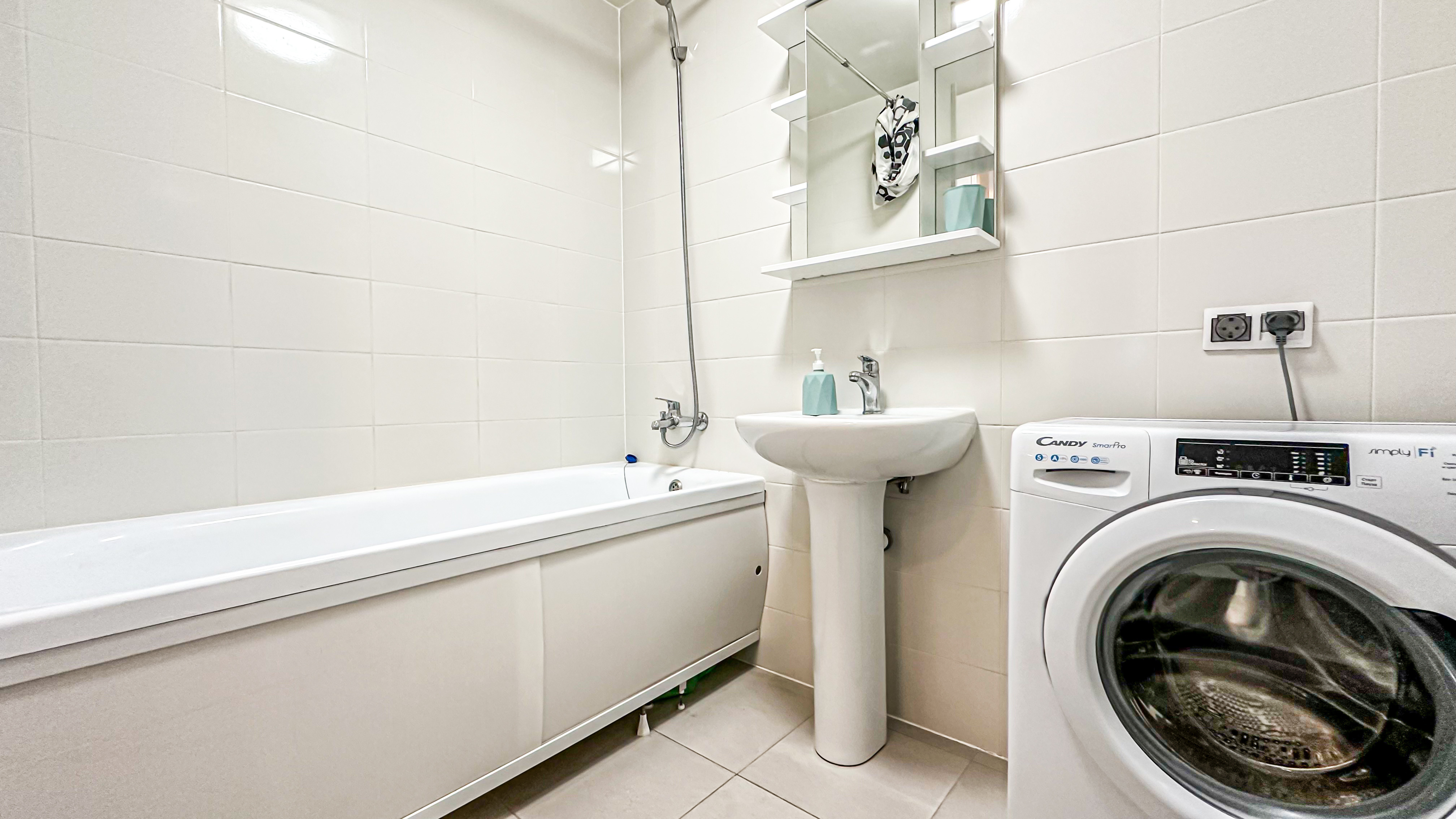 Удобства: двуспальная кровать, вместительный шкаф, сушилка для белья, фен, оборудованная кухня, холодильник, полный комплект посуды для приготовления и приёма еды, стиральная машина . После каждого выезда гостей проводим генеральную уборку.