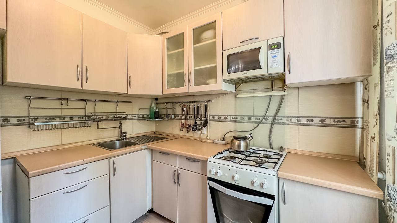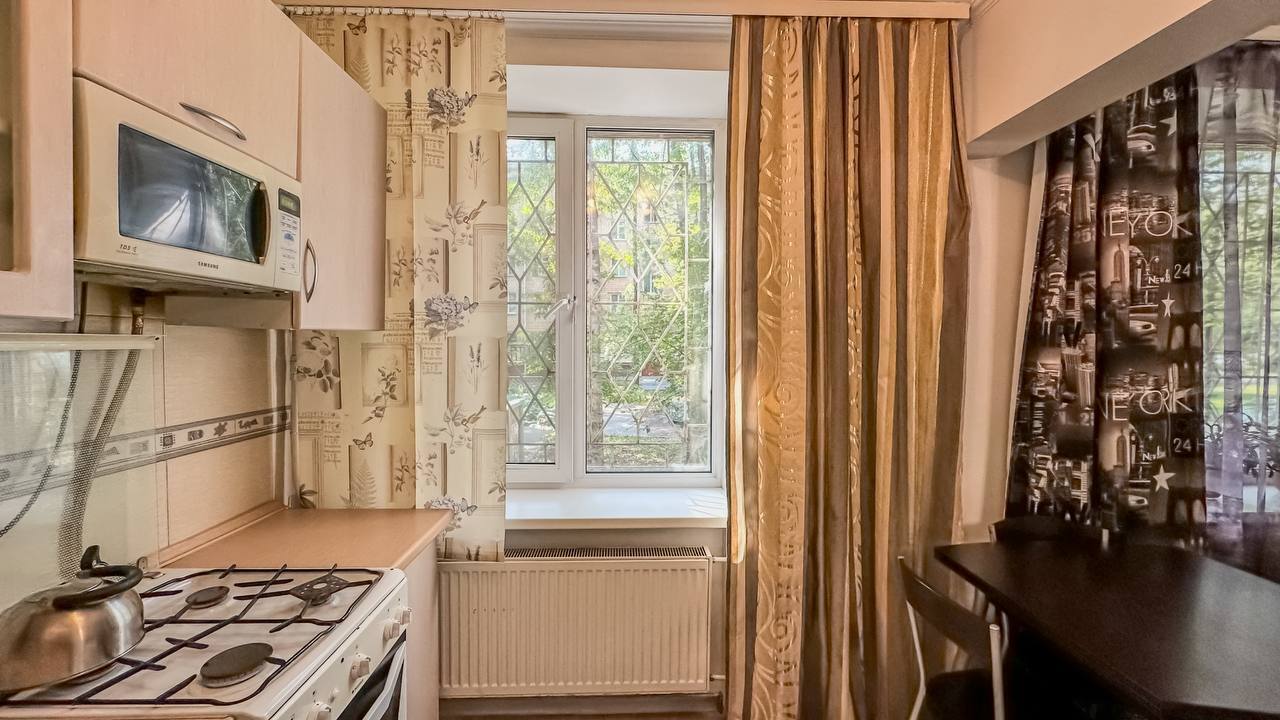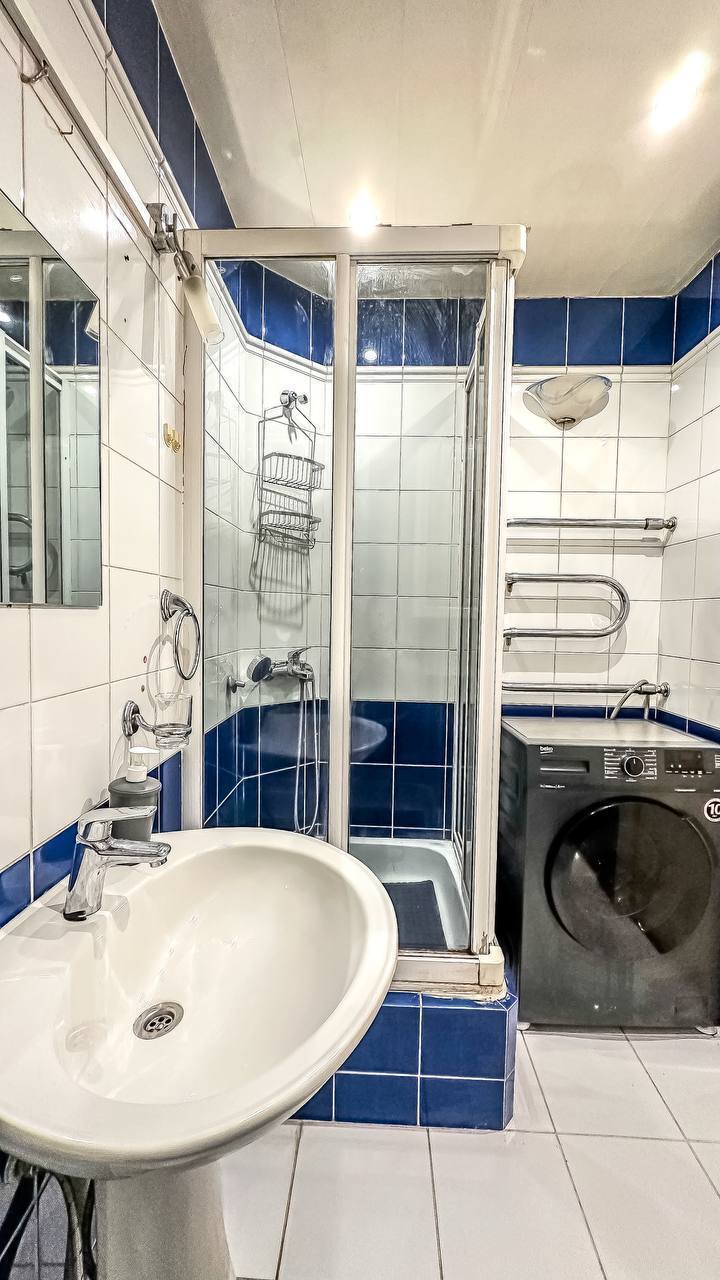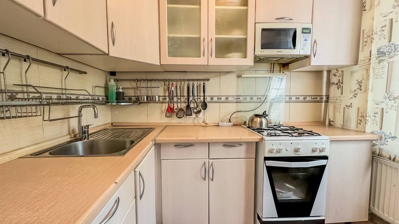 Удобства: двуспальная кровать, вместительный шкаф, сушилка для белья, фен, оборудованная кухня, холодильник, полный комплект посуды для приготовления и приёма еды, стиральная машина. После каждого выезда гостей проводим генеральную уборку.
