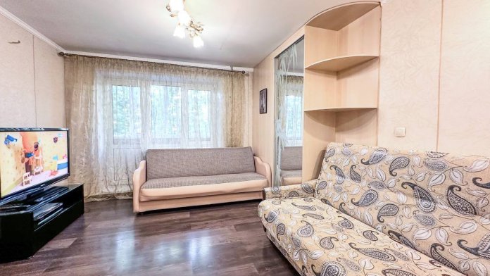 Удобства: двухспальный диван, вместительный шкаф, сушилка для белья, фен, оборудованная кухня, холодильник, полный комплект посуды для приготовления и приёма еды, стиральная машина с сушкой.После каждого выезда гостей проводим генеральную уборку.