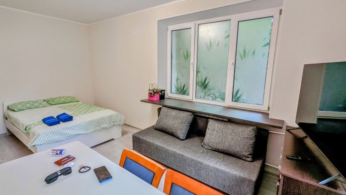 Удобства: двухспальный диван, двуспальная кровать, вместительный шкаф, WI-FI 300 , гладильная доска, утюг, сушилка для белья, фен, оборудованная кухня ( фильтр для воды, плита, духовой шкаф), холодильник, полный комплект посуды для приготовления и приёма еды, стиральная машина с сушкой. После каждого выезда гостей проводим генеральную уборку.