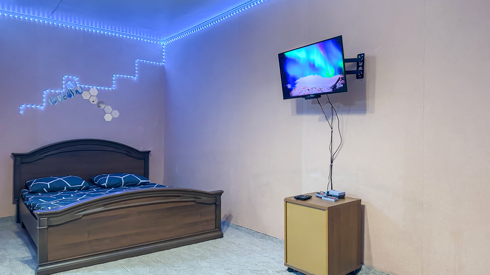Удобства: двухспальный диван, вместительный шкаф, сушилка для белья, фен, оборудованная кухня, холодильник, полный комплект посуды для приготовления и приёма еды, стиральная машина. После каждого выезда гостей проводим генеральную уборку.