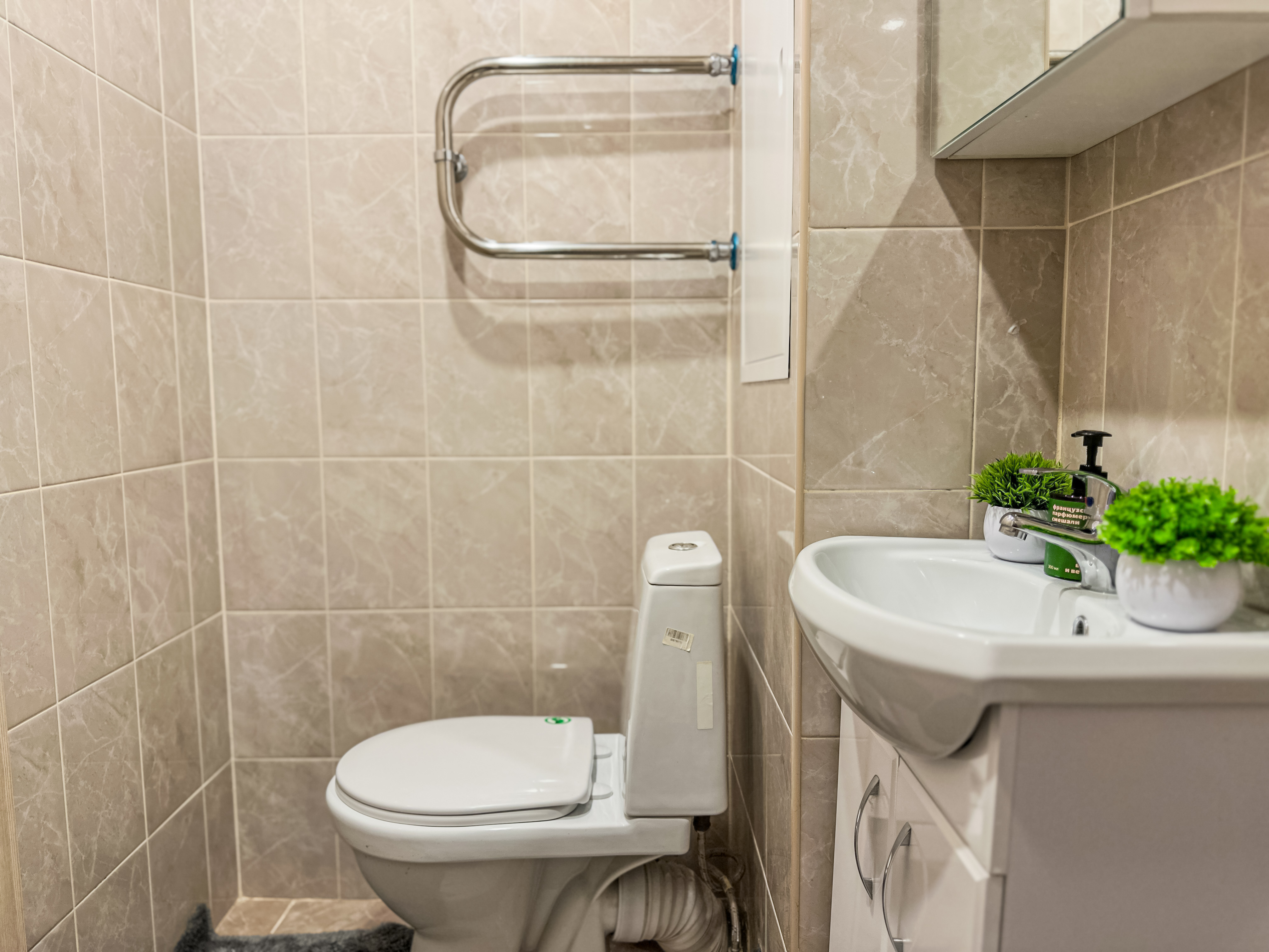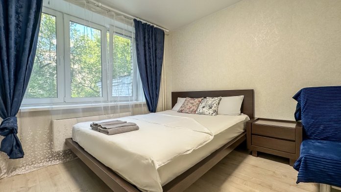 Удобства: двуспальная кровать, вместительный шкаф, сушилка для белья, фен, оборудованная кухня, холодильник, полный комплект посуды для приготовления и приёма еды, стиральная машина. После каждого выезда гостей проводим генеральную уборку.