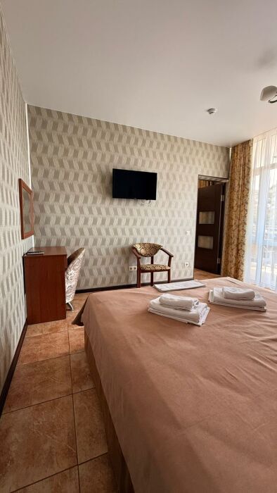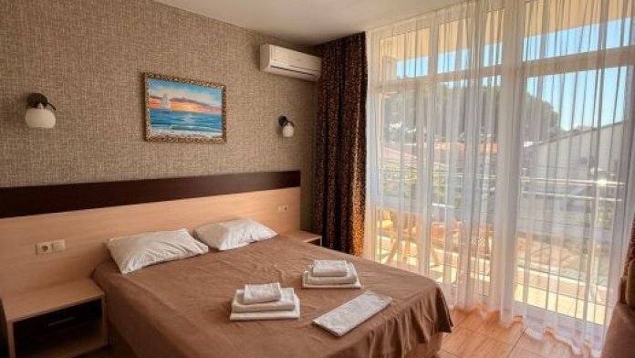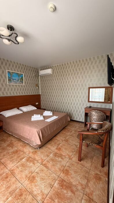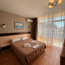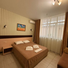 К Вашим услугам комфортные однокомнатные и двухкомнатные 2, 3, 4, 5-местные номера со всеми удобствами и балконом. В номерах выполнен качественный ремонт и установлена современная удобная мебель. В номерах есть все необходимое: мини- холодильник, телевизор, сплит- система, сейф, фен, душ, туалет, полотенца, постельное белье, на балконе сушилка для белья и летняя мебель.