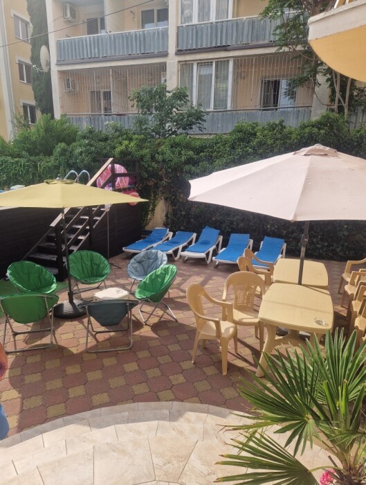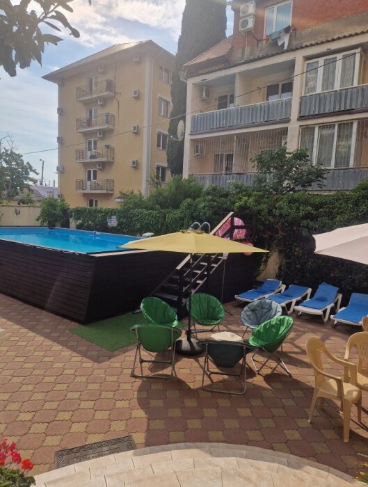На территории гостиницы имеется бассейн с подогревом (ширина 5 м, длина 10 м, глубина 1,3 м), лежаки, столики, кресла, зонты, мангал, парковка.