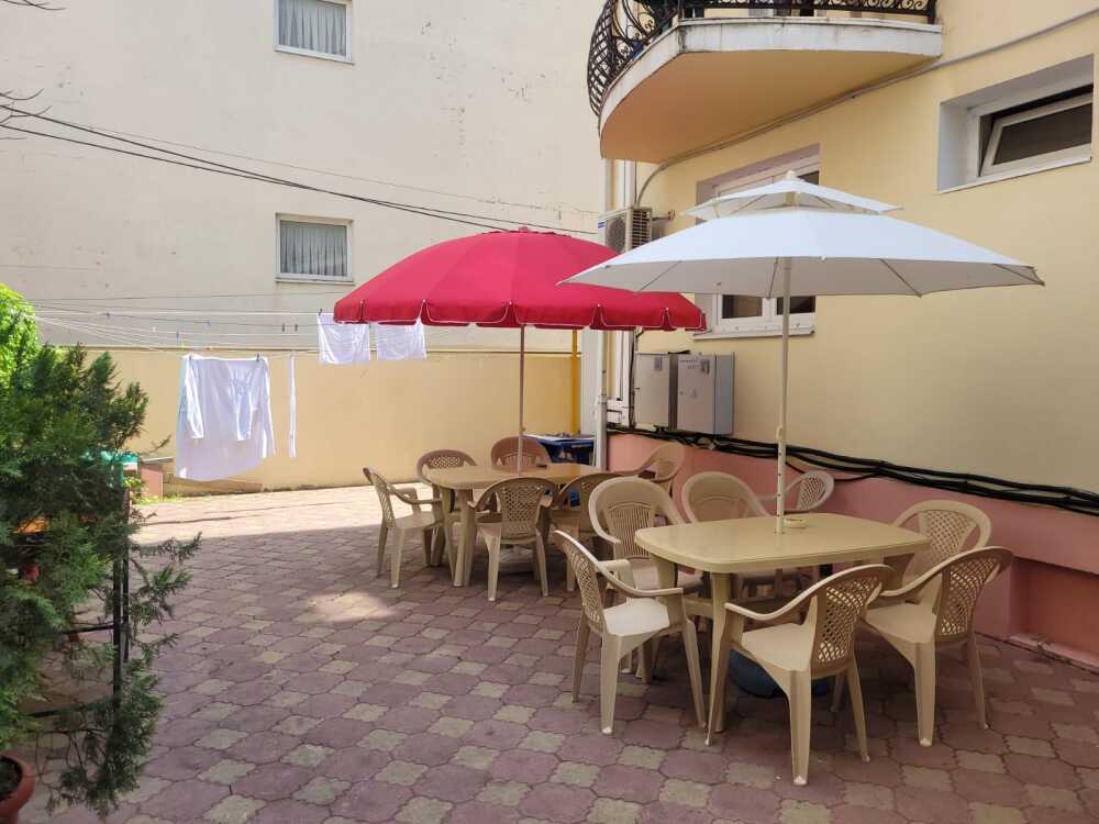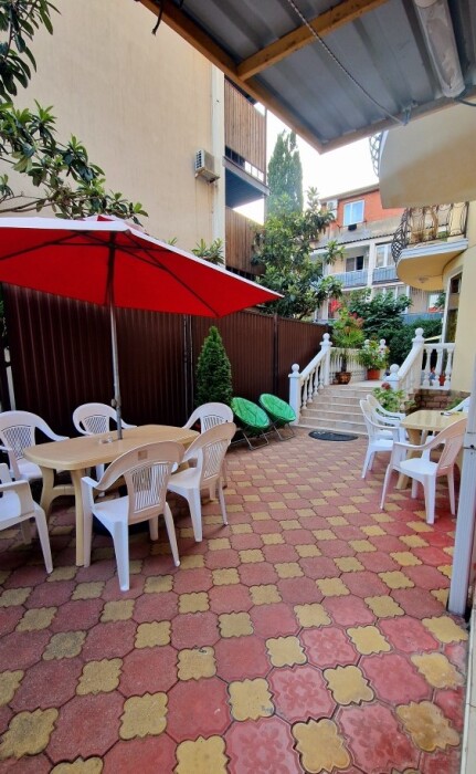 Сушилка для белья, столики и кресла для гостей номеров данной категории предусмотрены во дворе.