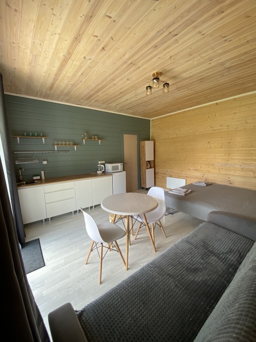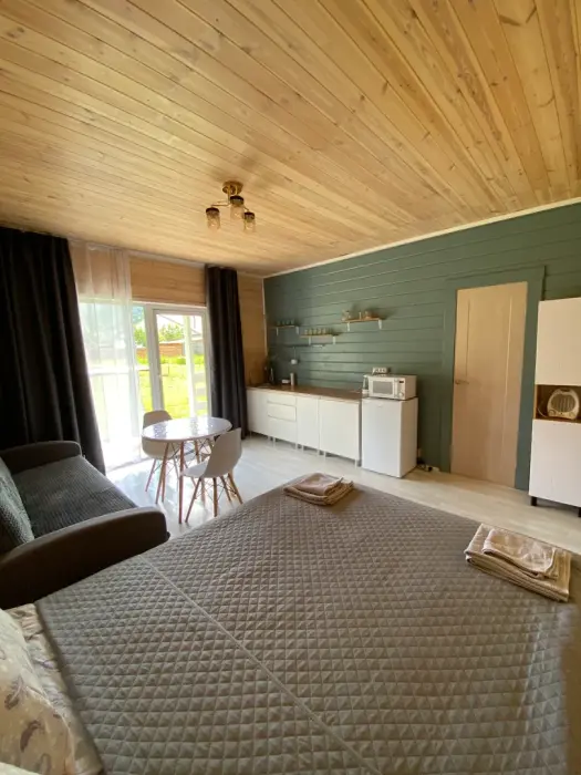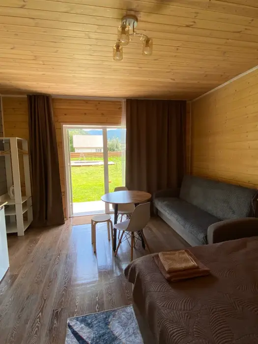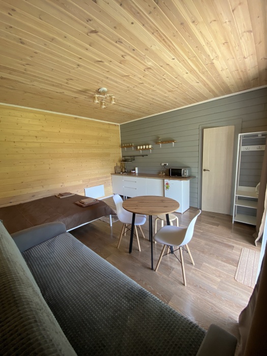 На территории есть 1 комфортабельный домик с 2 отдельными номерами и общей просторной террасой. Каждый номер оборудован собственным санузлом и кухней со всем необходимым для приготовления пищи, что позволяет чувствовать себя как дома.