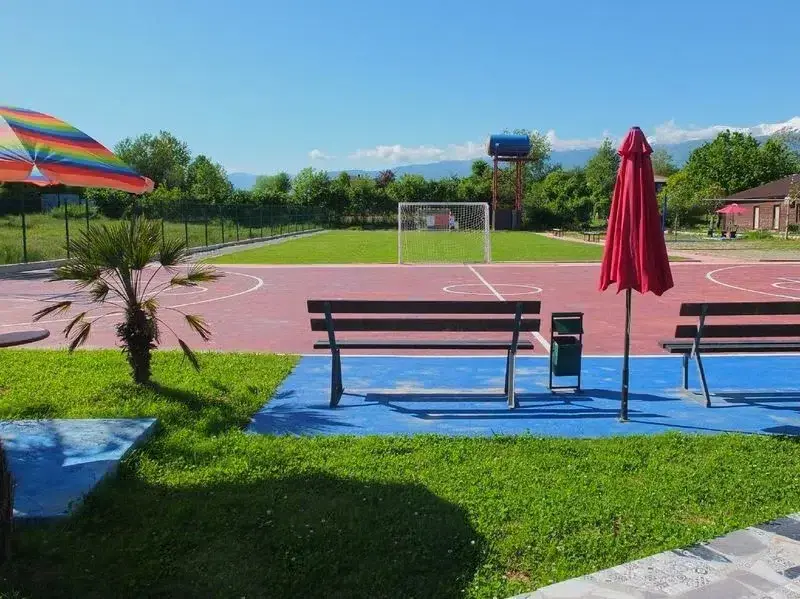 Закрытая и охраняемая территория площадью 4 гектара. Работает ресторан с вкусной кухней, уютный бар, а также отдельная бесплатная зона отдыха с мангалом для самостоятельного приготовления блюд. На территории есть сауна и 3 бассейна для Вашего комфортного отдыха. Бесплатный трансфер до моря - 3 раза в день. Для занятий спортом и для развлечения имеется: детская площадка, детский батут, настольный теннис (пинг-понг), волейбол, футбол, баскетбол, прокат велосипедов.
