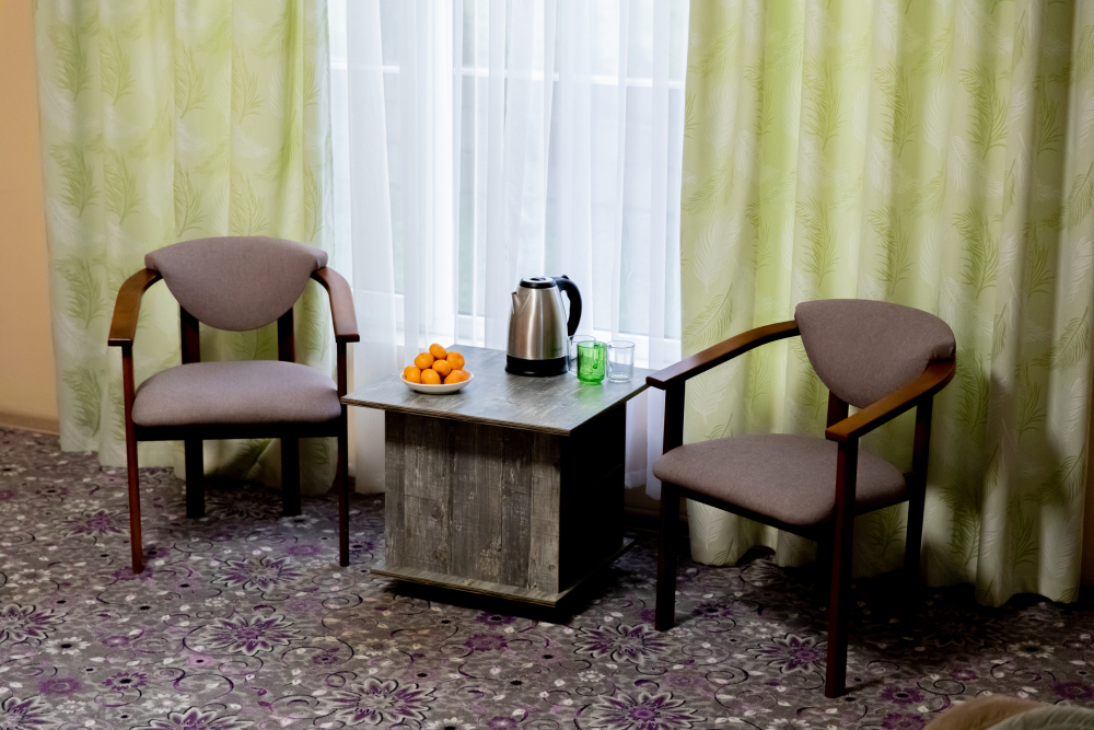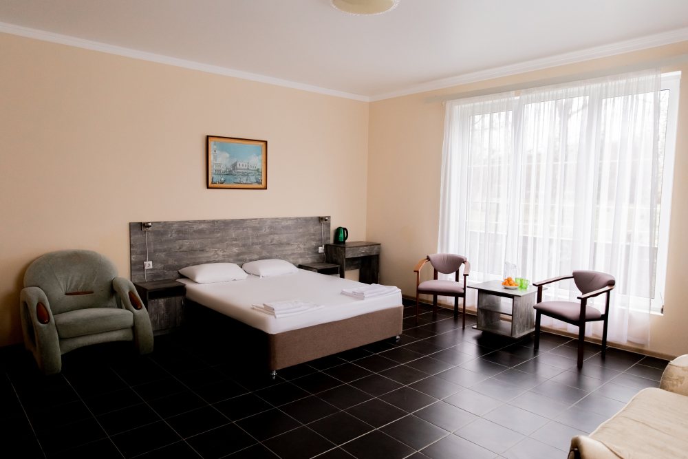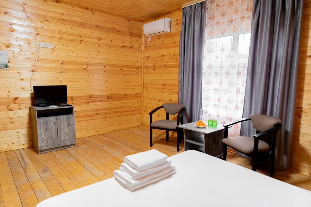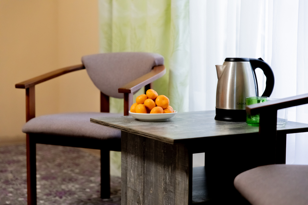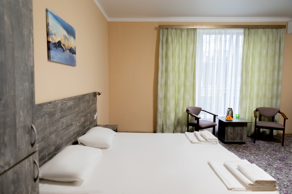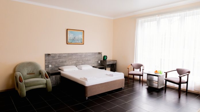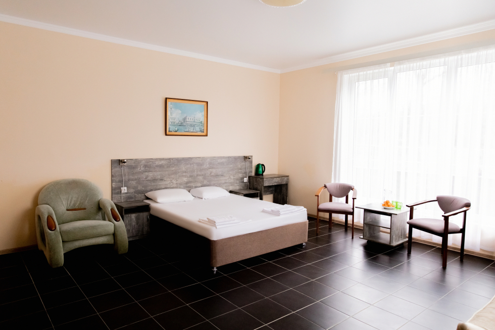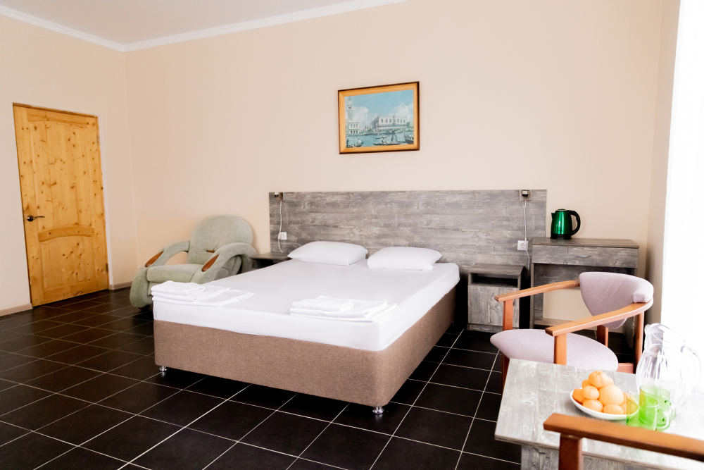 В каждом номере: собственная ванная комната, кондиционер, телевизор, холодильник, чайник и посуда. Всегда свежие полотенца и чистое постельное бельё.