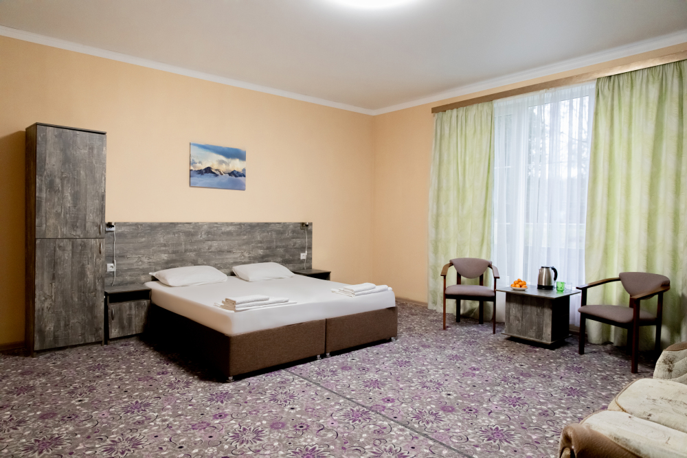Для Вашего комфорта в номере предусмотрена двуспальная кровать (с возможностью разделения на 2 односпальные), а также дополнительная односпальная кровать.