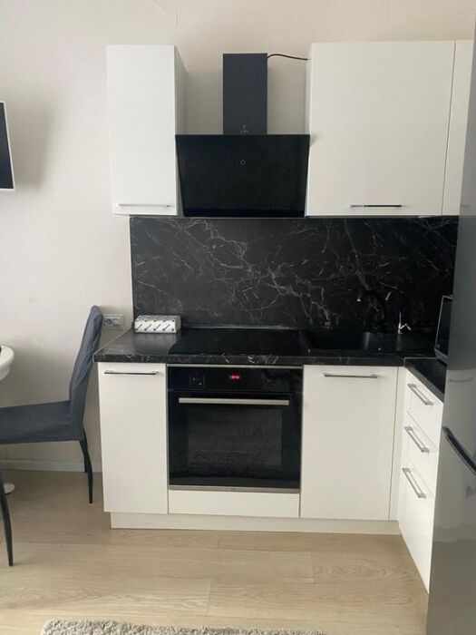 - Полностью укомплектованная кухня: холодильник, плита, микроволновая печь, чайник, мультиварка, посуда и столовые приборы.