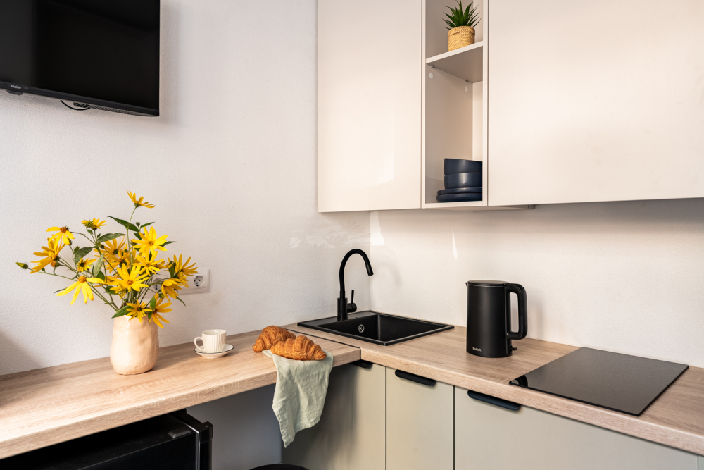 - Кухня-гостиная: полностью укомплектована посудой и техникой для приготовления любимых блюд.