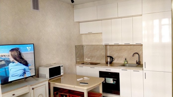 А также в квартире есть: микроволновая печь, духовой шкаф, индукционная печь, кухонные приборы, стиральная машинка, набор полотенец, по квартире вай фай.