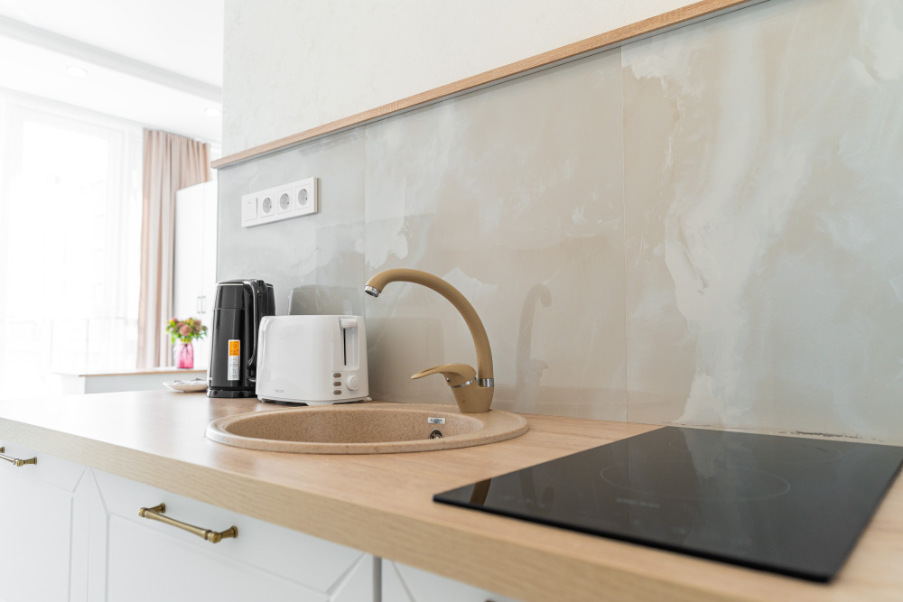 Современная техника: сплит-система, Smart TV, микроволновка, стиральная машина, индукционная плита, утюг, фен.