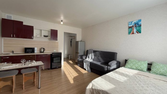 Студия в Новосибирске. Метро Студенческая в 10 минутах ходьбы. Все в шаговой доступности - большое количество торговых и развлекательных центров для проведения досуга (ТЦ «Версаль», ТРК «Горский», кинотеатры, рестораны). До центра города, площади Ленина, Оперного театра 15 минут езды.