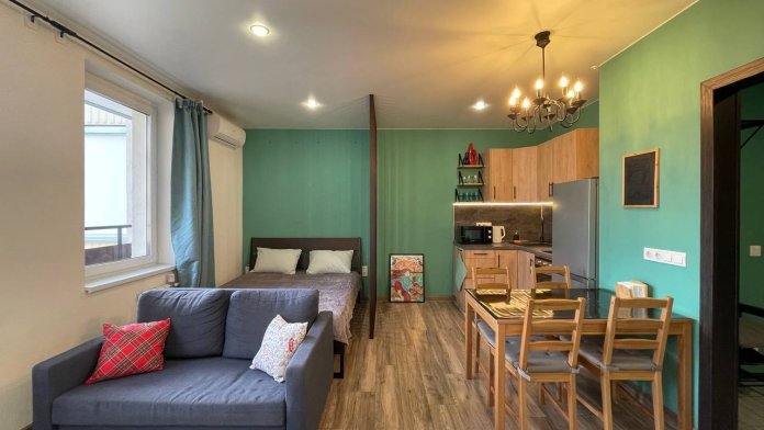 Квартира-студия в Новосибирске. Метро Карла Маркса в 10 минутах ходьбы. Все в шаговой доступности - большое количество торговых и развлекательных центров для проведения досуга (ТЦ «МЕГА», ТЦ «Версаль», ТРК «Горский», кинотеатры, рестораны). До центра города, площади Ленина, Оперного театра 15 минут езды.