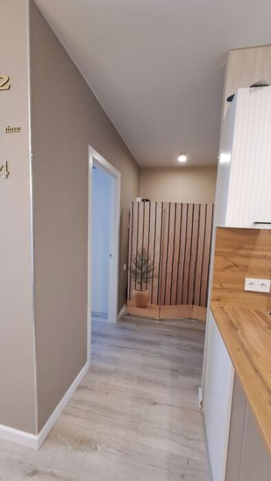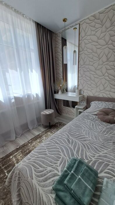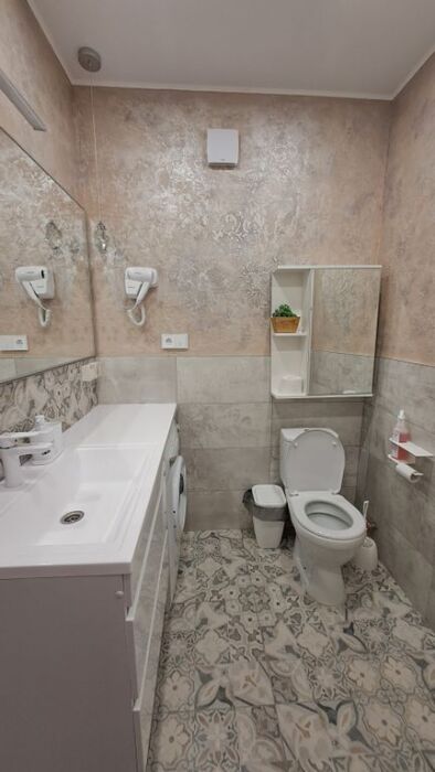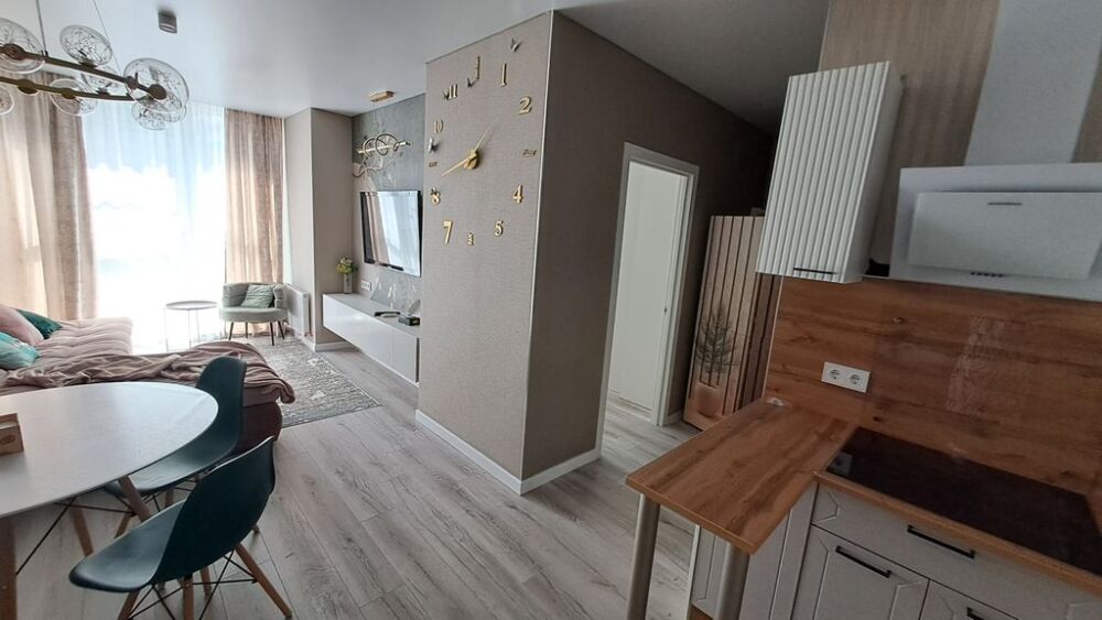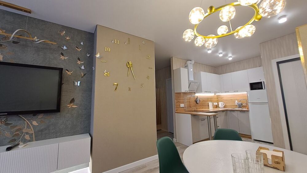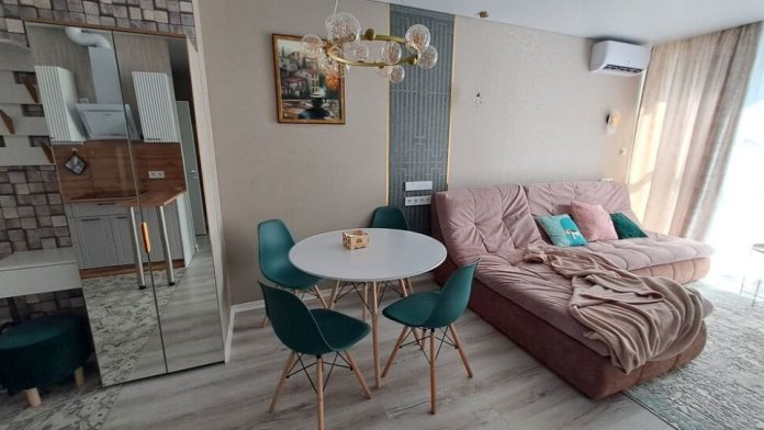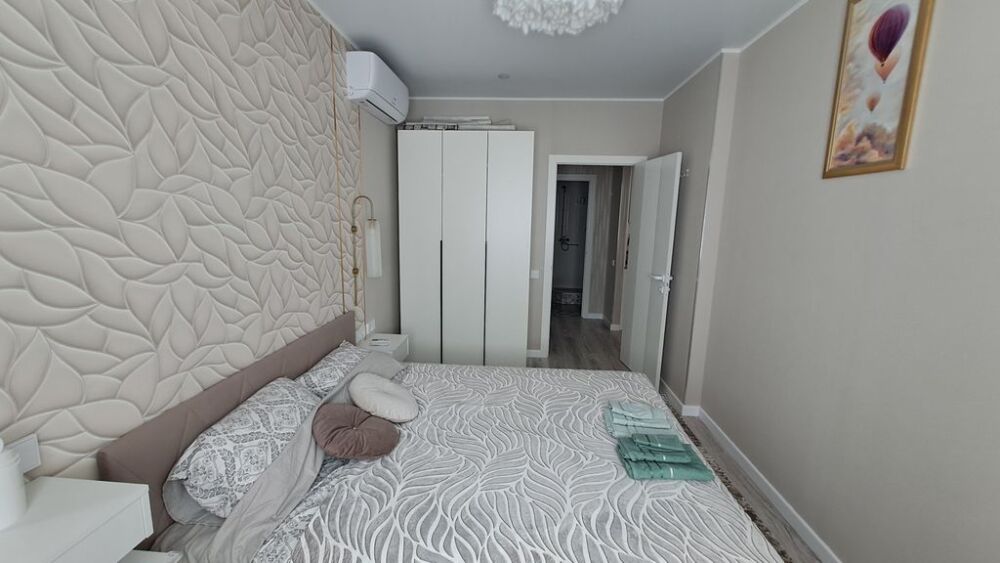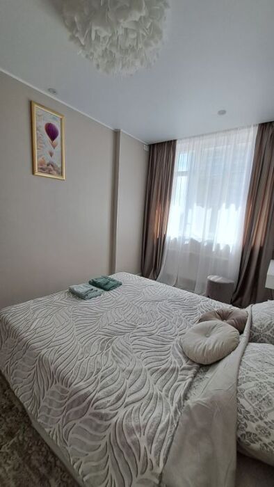 Уютная квартира с одной спальней 12 кв.м. и кухней-гостиной 25 кв.м. в новостройке. Панорамное окно добавляет света и уюта в в комнату, из него хорошо видно всю парковку (это важно для гостей с автомобилем) и немного виден Дон со стоящими на нем сухогрузами, ожидающими пропуск через подъемный мост - это достопримечательность Ростова. В спальне удобная кровать с постельными принадлежностями, анатомическим матрасом и подушками средней мягкости от Аскона, туалетным столиком с огромным зеркалом, кондиционером. Кухня оборудована всем необходимым для приготовления еды: индукционная 4-конфорочная плита, вытяжка, подсветка, СВЧ-печь, чайник, холодильник, посуда и другие принадлежности. В гостиной телевизор 50» со смарт-приставкой, можно заходить со своего аккаунта. Кондиционер и теплый пол. Вай-фай и оптоволоконный интернет. Удобный просторный диван в гостиной раскладывается в просторное двуспальное место, его можно отгородить имеющейся мобильной ширмой для комфорта отдыхающих. В санузле душевой поддон, мягкая подсветка,стиральная машинка, средства гигиены, полотенца - всё для удобства проживания. Есть помещение с сушилкой для белья и отпаривателем. Для курящих гостей - выход на балкон переходной лестницы с прекрасным видом на город, реку и подъемный мост. Бесконтактное заселение.