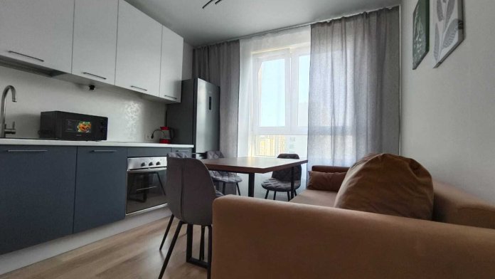 В квартире есть все необходимое: двухспальная кровать, диван, кухонный гарнитур, плита, микроволновка, чайник, стиральная машина, телевизор, шкаф, обеденная зона, гладильные принадлежности, Wi-Fi. Предоставляются туалетно-косметические принадлежности.