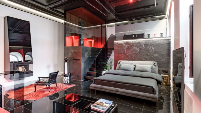 Несмотря на небольшую площадь, здесь есть полноценная кухня с современной бытовой техникой, гостиная зона с удобной мягкой мебелью и камином, огромная двухэтажная ванная комната с сауной и душевой. Особая изюминка этой квартиры - разноуровневое освещение , которое позволяет создать невероятную атмосферу и комфорт. Благодаря своему уникальному дизайну апартаменты подойдут не только для проживания, но и для проведения фотосессий и съемок.