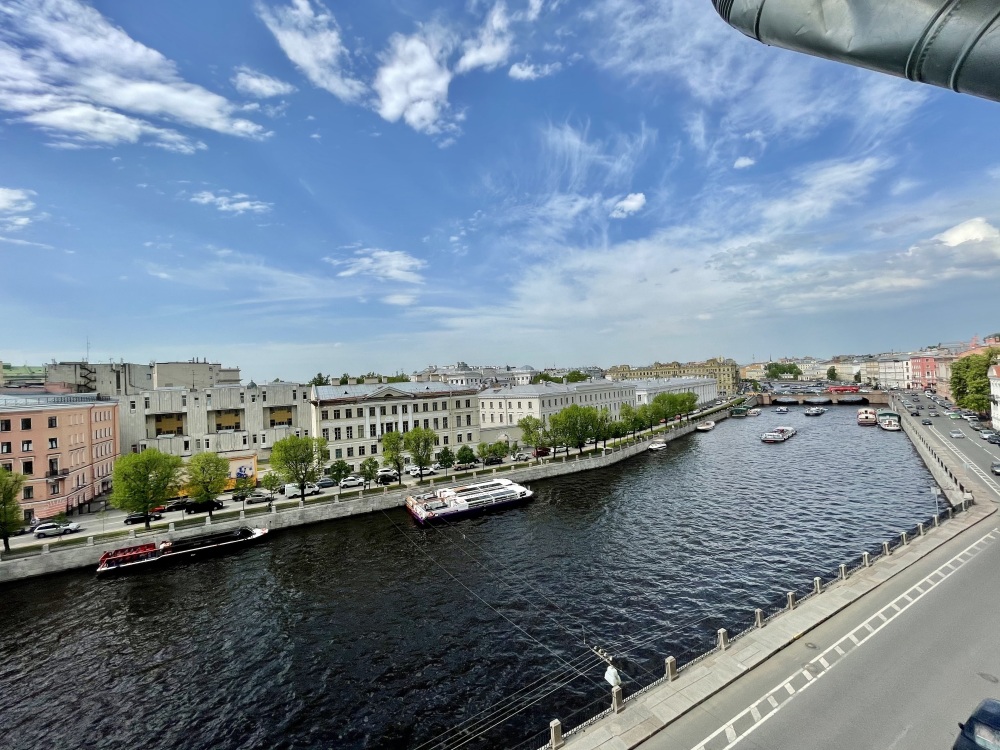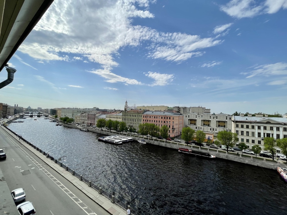 Приглашаем Вас в первоклассные апартаменты с панорамным видом на реку Фонтанку, знаменитые Аничков мост (на пересечении с Невским проспектом), Аничков дворец, мост Ломоносова (со знаменитыми чугунными цепями).