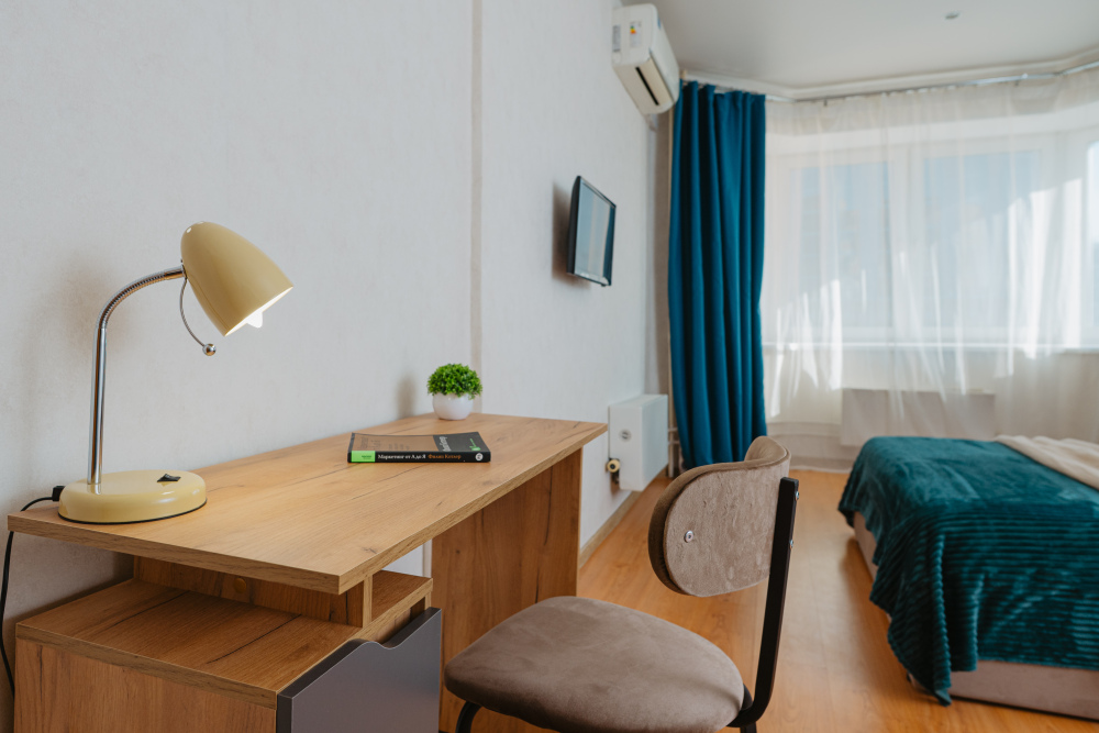 - рабочее место с письменным столом и стулом - идеально для командировок и семейного отдыха;