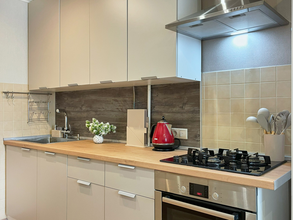 - газовой плитой, микроволновой печью, чайником, холодильником;