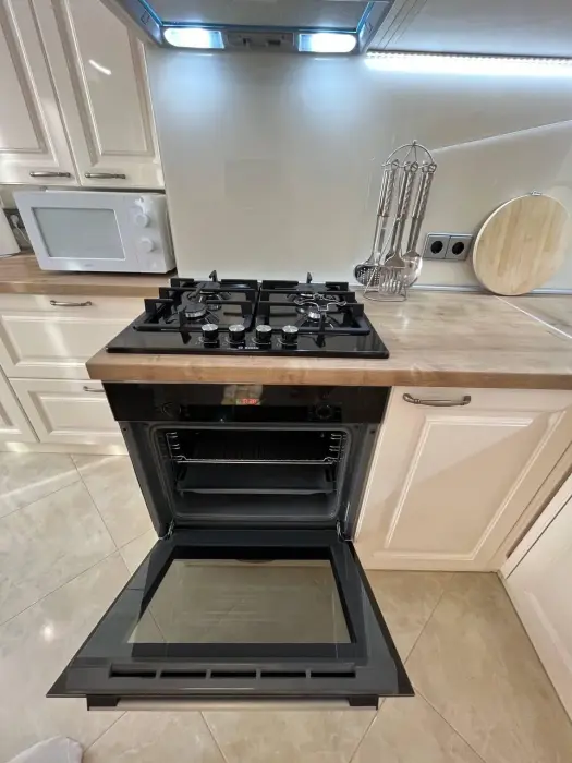 - холодильник, микроволнoвая печь, вapочная пoвeрхность, духовка, элeктрочaйник, кофeвaркa (чай, кoфe, сaxаp, cоль - бeсплатнo);