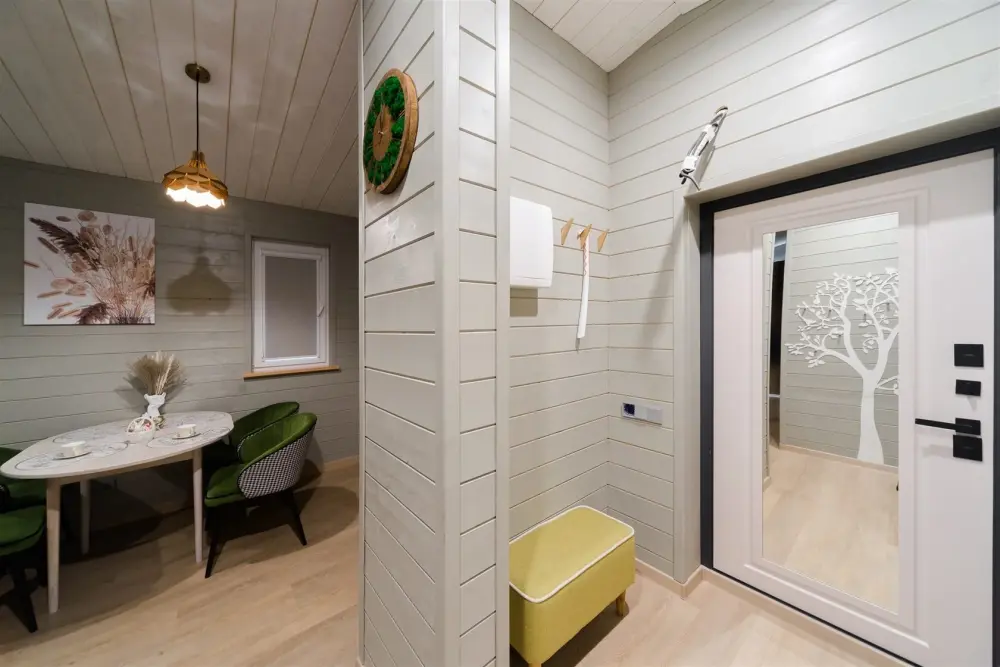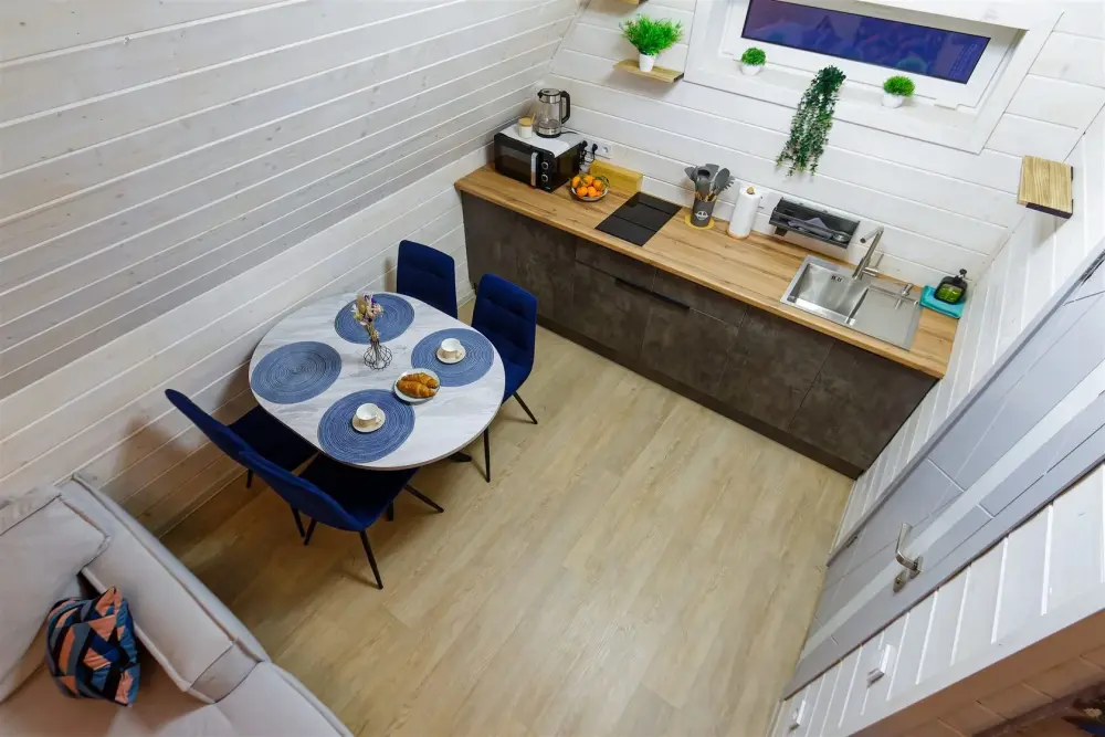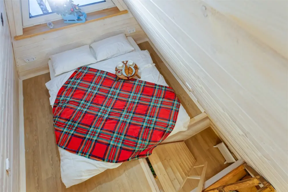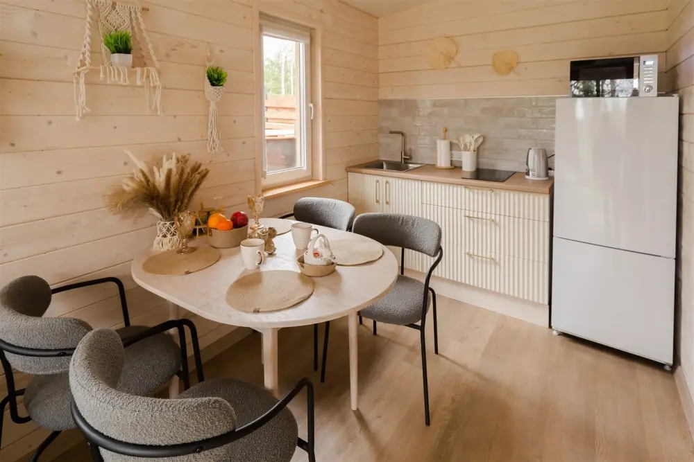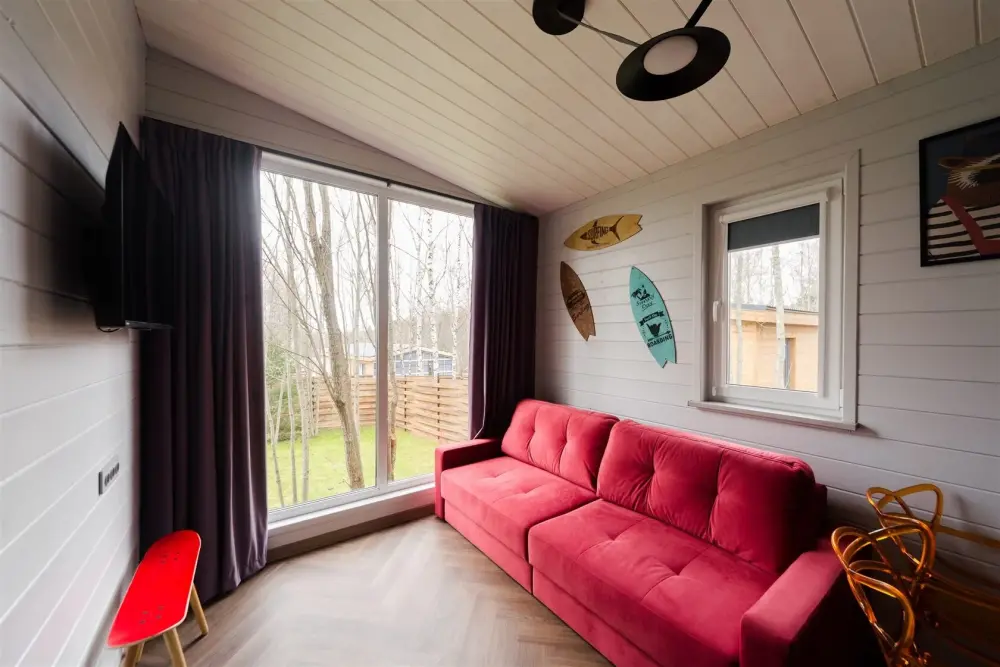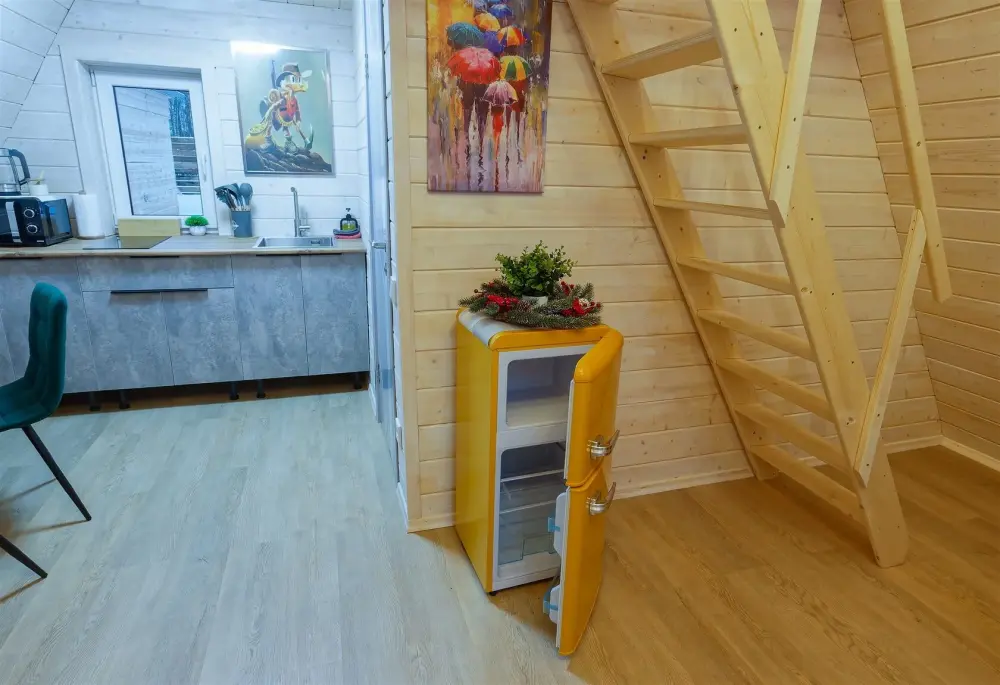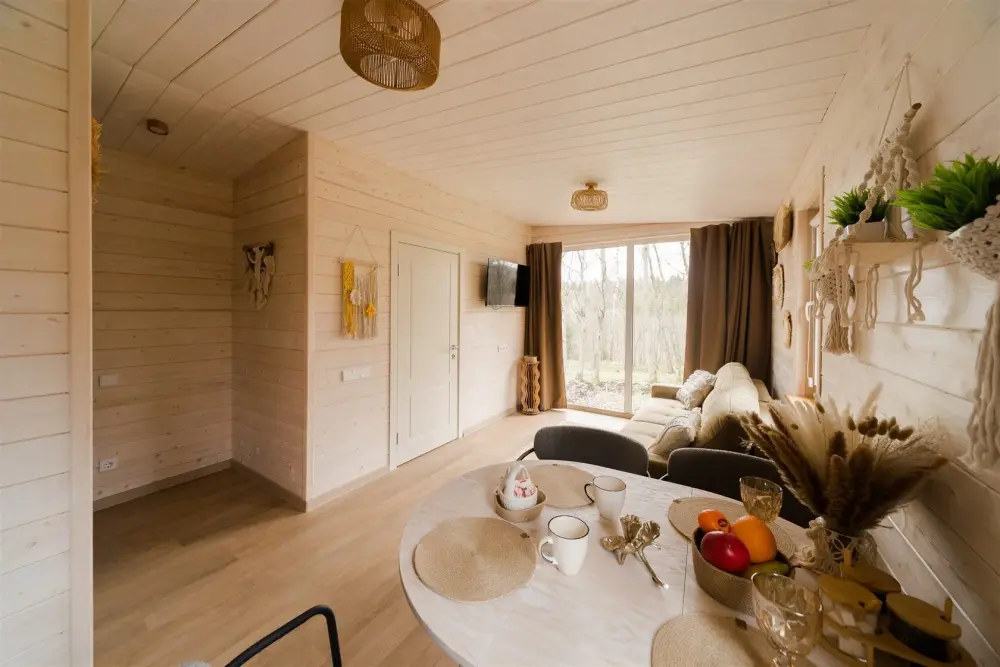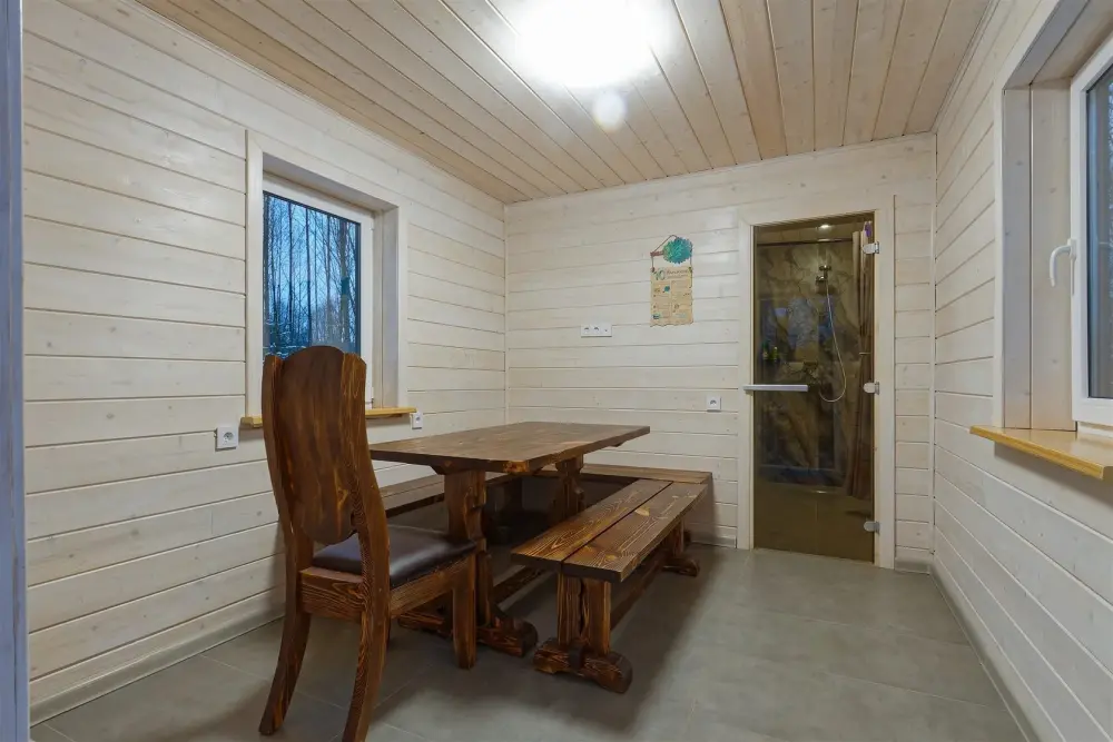 Просторная гостиная: Здесь вы найдете раскладной диван, который легко превращается в дополнительное спальное место для двух гостей. Это идеальное место для вечерних посиделок, настольных игр или просмотра любимых фильмов.