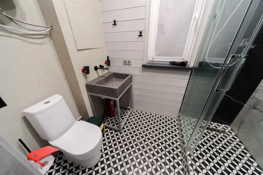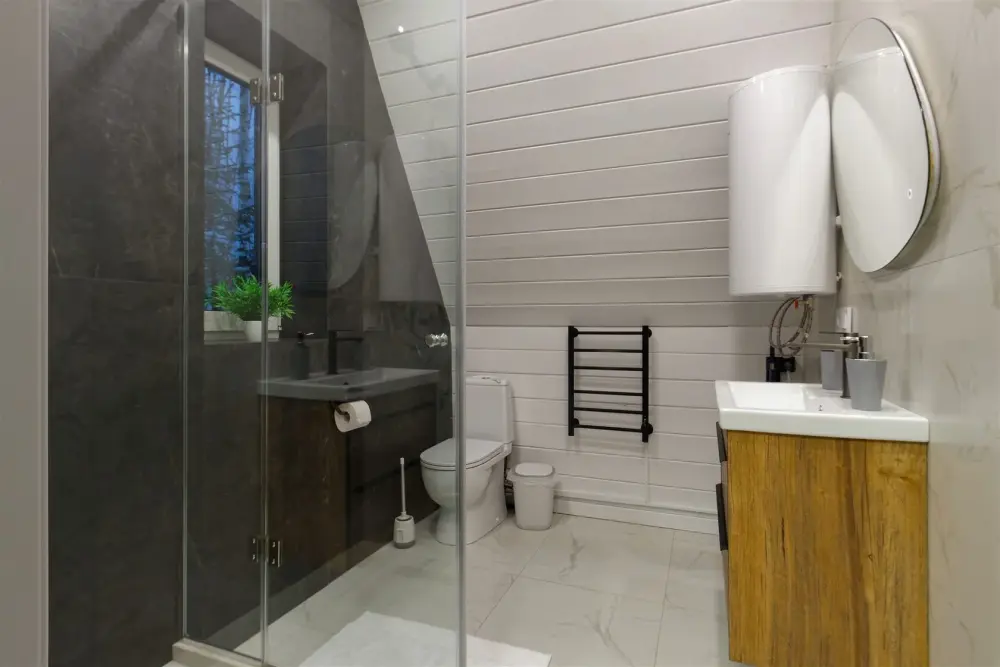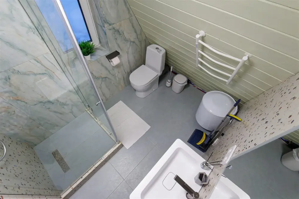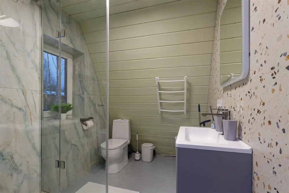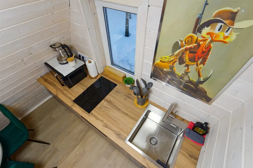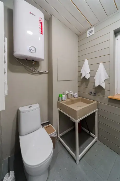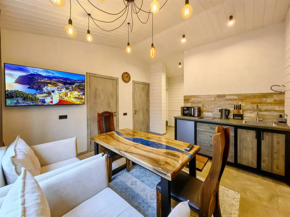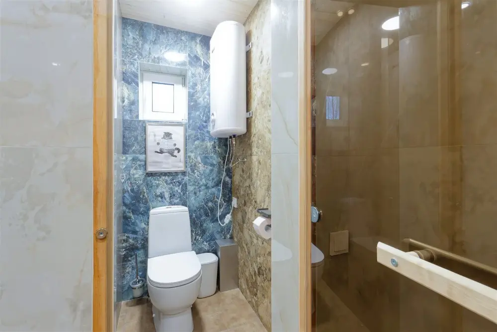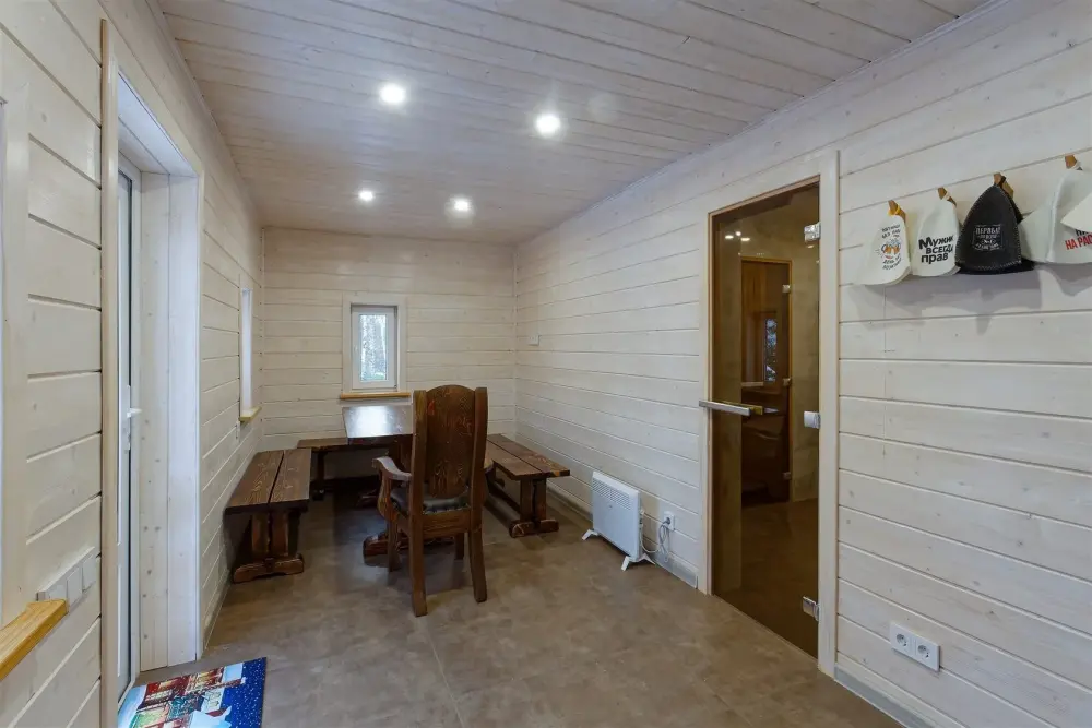Просторная гостиная: Здесь вы найдете раскладной диван, который легко превращается в дополнительное спальное место для двух гостей. Это идеальное место для вечерних посиделок, настольных игр или просмотра любимых фильмов.
