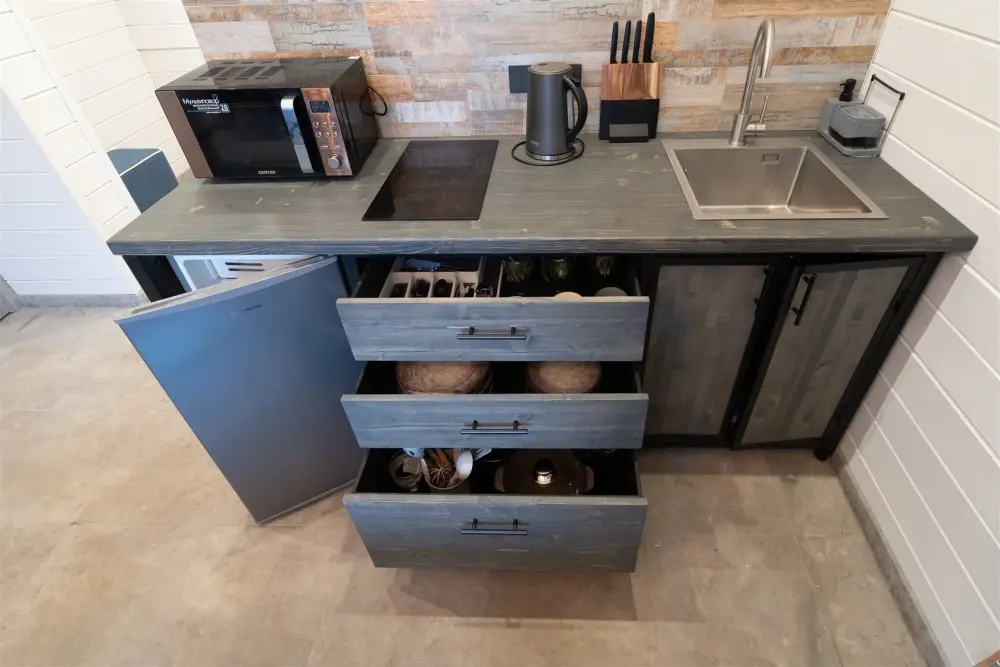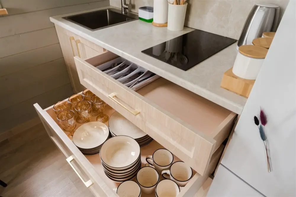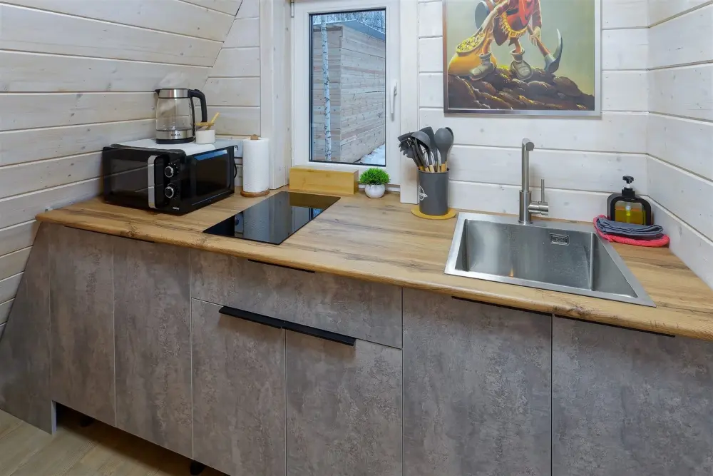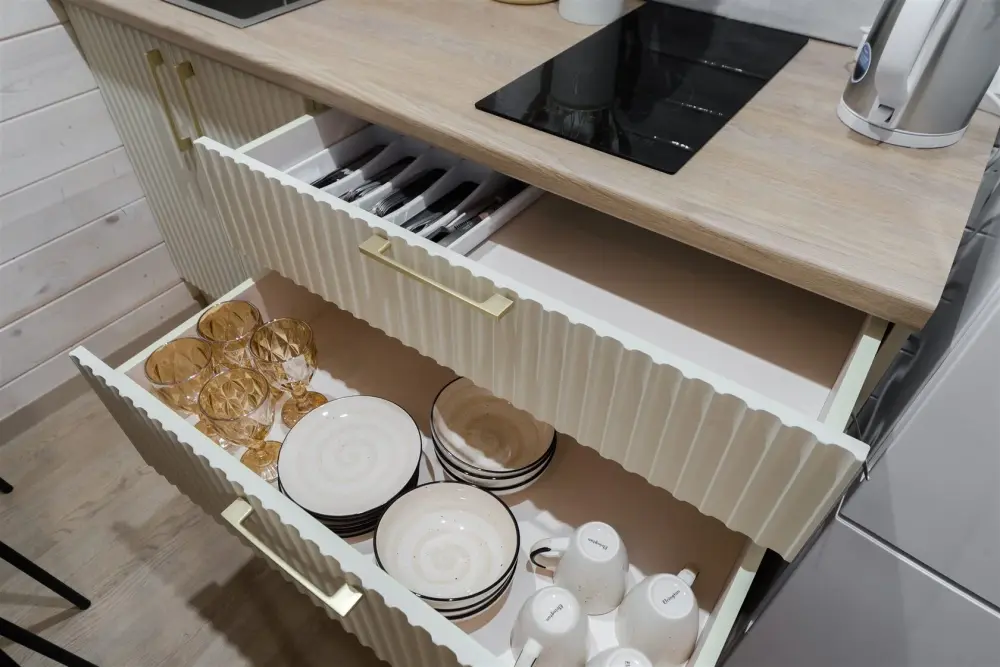 Полностью оборудованная кухня: Готовьте любимые блюда с удовольствием! Наша кухня оснащена всем необходимым, чтобы вы чувствовали себя как дома.