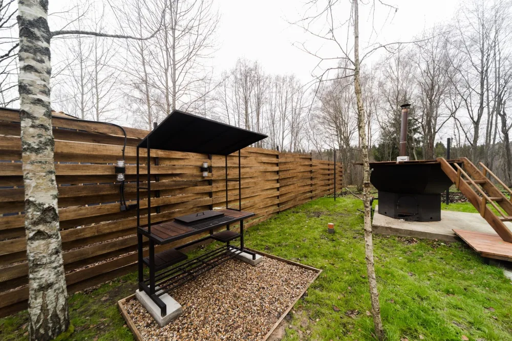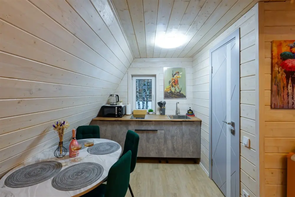 Вместимость: до 4 человек (спальня + раскладной диван). Удобства: полностью оборудованная кухня, своя терраса, мангал. Релакс: банный чан и баня (доп. оплата).