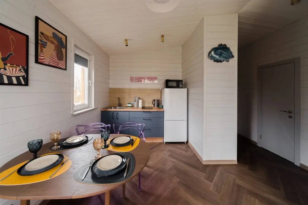 Каждый дом выполнен в уникальной стилистике и рассчитан на прием от 2 до 6 гостей. Мы заботимся о вашем комфорте, предлагая современную мебель и технику высочайшего уровня. У каждого домика своя уютная терраса, мангальная зона.