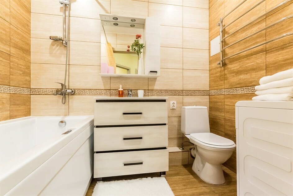 - комфортный санузел с ванной, стиральной машиной, туалетными принадлежностями и феном;